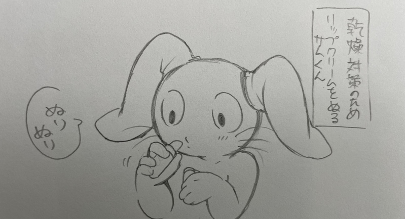 寒さ、乾燥時期ですね。乾燥対策のためリップクリームを塗っていつものように❓くんへ手紙を持って行く💙くん。