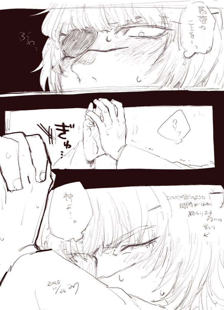 何もできないしない触れないつもりなのに🌸はそんなのお構いなしで密着してくるし目の前でひとりでエッなことになっていく地獄のような時が過ぎ去るのを両手を組んで強く祈るしかないーニさんがみたいという雰囲気まんがです(全部説明した)
