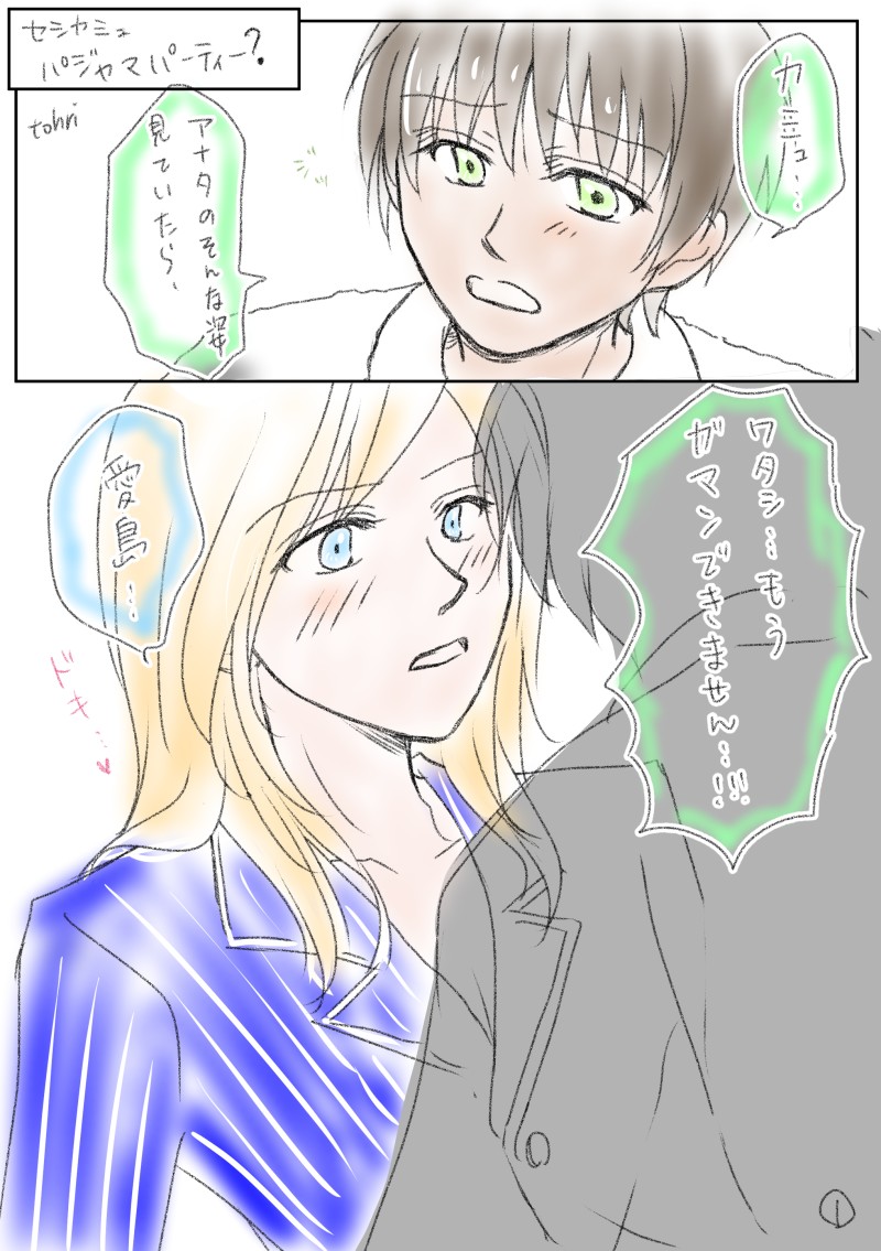 tohrilovestyle☆quiet followDONEセシカミュパジャマパーティーまとめ!ありがとうございました😊 #セシカミュ secessioneering show all(+3 images) Tap to full screen (size:2039x2894).Repost is prohibited Let's send reactions! freqpopularsnackothersPayment processing Replies from the creator Follow creator you care about!☆quiet follow tohrilovestyleINFO5/4超プリコンの新刊サンプルです。うたプリヒプマイコラボに乗って、推しカプを合わせてみました! 5 tohrilovestyleDONEちょっと肌色なので… tohrilovestyleDONEエイプリルフールのやつ。先月あげるつもりがなんやかやで今月に。落ちてはいない…。 #7〜11日はセシカミュ期間 #セシカミュ 3 tohrilovestyleDONEおとぎ話!不幸な主人公!意地悪な姉!からのハピエン! 2 tohrilovestylePROGRESS絶ヘヴ開催おめでとうございます★新刊になるはずだったオメガバースヴァンいち『嘘つきなアルファと偽りのオメガ』の進捗をこちらにあげてまいります!(追記)追加ページ出来アップしました!完成したら10月開催のヘヴオンリー(と同時開催のイベント)にて頒布予定です!通販も予定しております。どうぞ宜しくお願い致します!スタンプで応援頂けると嬉しいです! 10 tohrilovestyleDONEあのキャラとのコラボとなれば、アレが気になります…✳︎ 2 related works tohrilovestylePROGRESSノー学セシカミュ進捗… 2 nachiromaSPOILERドラマCDのブックレットの地図のとある建物ネタです。愛帝×カミーユなセシカミュです 3 nachiromaDONE夜の運動会セシカミュ描けたー!競技は絵の中に。小学生のような発想ですねw tohrilovestyleDOODLE(ネタバレ注意)ドラマCDブックレットから導き出したセシカミーユ考察です!捏造上等!! 2 tohrilovestyleDONEセシカミュの日💕今日だけじゃなくても毎日が記念日✨ 肌色マンガなのでワンクッション😇 3 tohrilovestyleDONE障害物競走に負けたのでコスプレしてもらいました!「レイジセンパイが体操服コスプレならコレだと言っていました!」『あやつ…許さん…!!』2枚目は止まらなくなった愛島さん😌 2 tohrilovestylePAST猫蛇再放送…。これはシャニライイベの時に描いた猫蛇。囚われの蛇ちゃん🥺(1枚目はサムネ用) 3 tohrilovestyleTRAININGセシカミュいちゃいちゃ。カミュのtkbを描きたかった😌 tohrilovestyleDONE【ネタバレ含】ドラマのあのシーンをやるにあたり、きっとシュミレーションしたんでしょうね〜☺️というまんが。 2