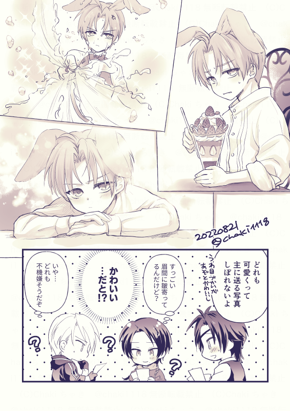 chaki1118☆quiet followDOODLEうさべくんのお話、もう少し続く #うさ耳 gossiper #長谷部くん hasebe. Tap to full screen (size:594x843).Repost is prohibited Let's send reactions! freqpopularsnackothersPayment processing Replies from the creator Follow creator you care about!☆quiet follow chaki1118DOODLE今まで本にした長谷部くん達の覚書↑「Good night.Sweet dreams.See you tomorrow.」のしょたべくん(香取本丸)「金色に滲む菫色」の叢雲本丸1振り目「もう、友だちにはもどれない」「君と僕のないしょの時間」の叢雲本丸2振り目「きみとふたり、醒めない夢に捉われて」の藤色の瞳の長谷部くん↓それぞれ瞳の色が少し違うけど漫画だとモノクロなので差がわからんw chaki1118DOODLEすごい長髪で後天性女体化したはせべくんのらくがき漫画線ぐちゃぐちゃの落書きなので解読力を発揮してお読みください chaki1118DOODLE祝玖寿 乱舞音曲祭衣装バレらくがき絵新↕️古・上着OFF(安定/浦島/南泉/加州)・サンバはせべ(ゲスト豊前)。とっても楽しそう・サンバ燭へし。ちょっと幻影見た・上着OFFはせべ・mistakeはせべ。待ってたわし狂喜乱舞・長谷部くんの衣装かわいい。デザインした人天才!!!! 6 chaki1118DOODLE縄へし本丸の一振り目燭へしは燭が極になる前後にちゃんとくっつく設定なのですが、くっついた途端、虫除けで自分の瞳と同じ色のピアスを長谷部くんに贈って、なおかつ自らホールを開けてほしい*ヘッド画像が変わるのが嫌なのでワンクッションで表示設定してます chaki1118DOODLE実休さんと彼岸花の塗り直し chaki1118DONE蜜藤JB2024お疲れ様でした会場で配布したDK燭へしの無配漫画になります*ねぼけながら描いた箇所があんまりにも酷かったので少し手直ししてあります 4 related works mhyk_towDONEミスオエ ナンジャ〇タウンの兎耳みてうさ耳と尻尾ができたミスオエセックスらぶらぶえっちから甘い雰囲気 キャラ崩壊しているかもしれない画像にしたら21枚だったので2に続きます読みにくくて申し訳ありません 15 volke.DOODLEうちの子ウサミミ娘の『ソフィヤ』ちゃんアナログ絵です♪#うちの子 #オリジナル #アナログ #アナログ絵 #オリキャラ #創作 #創作キャラ #軍人 #ウサミミ #ケモミミ #うさ耳 zn1akuntMAIKINGうさ耳ゾサ! Rioo0308DONE #うさ耳#創作#女の子アリアンロッドTRPG、獣人族の兎族の女の子。髪色の薄い青緑とか結構綺麗に混ぜられたと思う自己満 yomogimociTRAININGほんとは顔に包帯巻こうと思ったけど挫折_:(´ཀ`」 ∠): しゅうわDONE修道女ちっくに。 あんおにDOODLErkgk立ち耳のうさしょぽちんうさちゃんになっちゃった! しゅうわDONEうさ耳魔法使い はらだふみやDOODLE8月2日がバニーの日なら、パニーの日でもいいのでは?🤔 recommended works やいしTRAININGストロベリームーンちゃん nobunaga49DOODLE久し振りの現パロサウジャギ。やっぱり可愛い。 4 capiDOODLEスパイっていいよね dae_shoshoDOODLE1.現パロアビス 高校生グェイラの日常2.ゾアホリガン無視 入れ替わりリコさんとボ卿。案外動じないだろうという妄想 2 霧里モーガンPAST描いた立ち絵とか 6 玉栄。DOODLE雑伊 現パロ 顔捏造 灯野くずはDOODLE最近描いた一次創作 7 ayame_s_hDONER-18 569 Kotobuki_HiroDOODLE// suggestive ; nudity bite 💋💕
