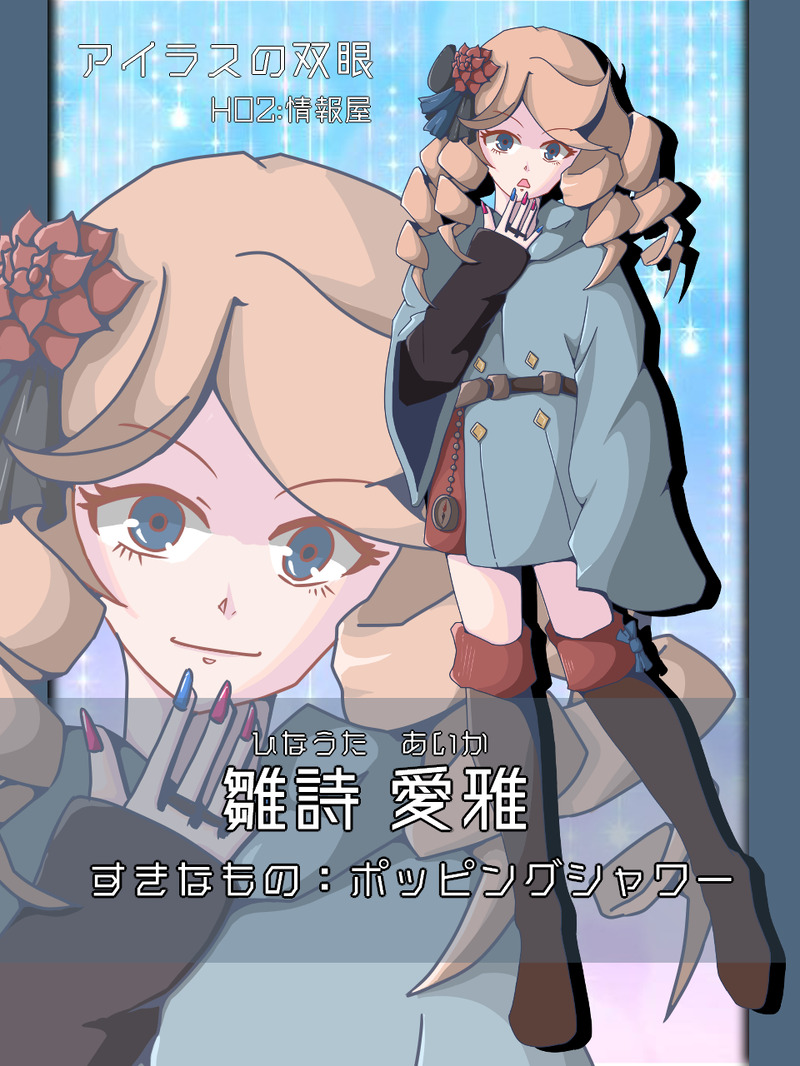 le_trpg☆quiet followSPOILERCoC第6版『アイラスの双眼』HO2:情報屋雛詩 愛雅(ひなうた あいか)ポッピングシャワーがすきです。※ネタバレ要素あり。 show all(+3 images) Tap to full screen (size:960x1280).Repost is prohibited Let's send reactions! freqpopularsnackothersPayment processing Replies from the creator Follow creator you care about!☆quiet follow le_trpgDONECoC第6版『My dear roseに捧ぐ』花が丘継続 KPC1枚目シルエット左:しまおさん右:ミシマさん 4 le_trpgDONE『ゾディアックスクール★ゴールデン』ゾスク継続HO丑のとか海に来ました。 5 le_trpgDONECoC第6版『四季送り』HO 弐 夏桑仏 苺華 くわぶつ いちか名前をハイビスカスからとってるのにどこにもハイビスカスがいない女。 2 le_trpgDONECoC『ハイフェッツをなぞる病』HO:天才天才LoLプロゲーマーRealer リアラー 2 le_trpgDONECoC第6版『庭師は何を口遊む』HO3 白鳥 蒼葵(しらどり あおぎ) 2 le_trpgDONECoC第6版『羅刹の檻』手摘 爽斗(てづみ しげと)