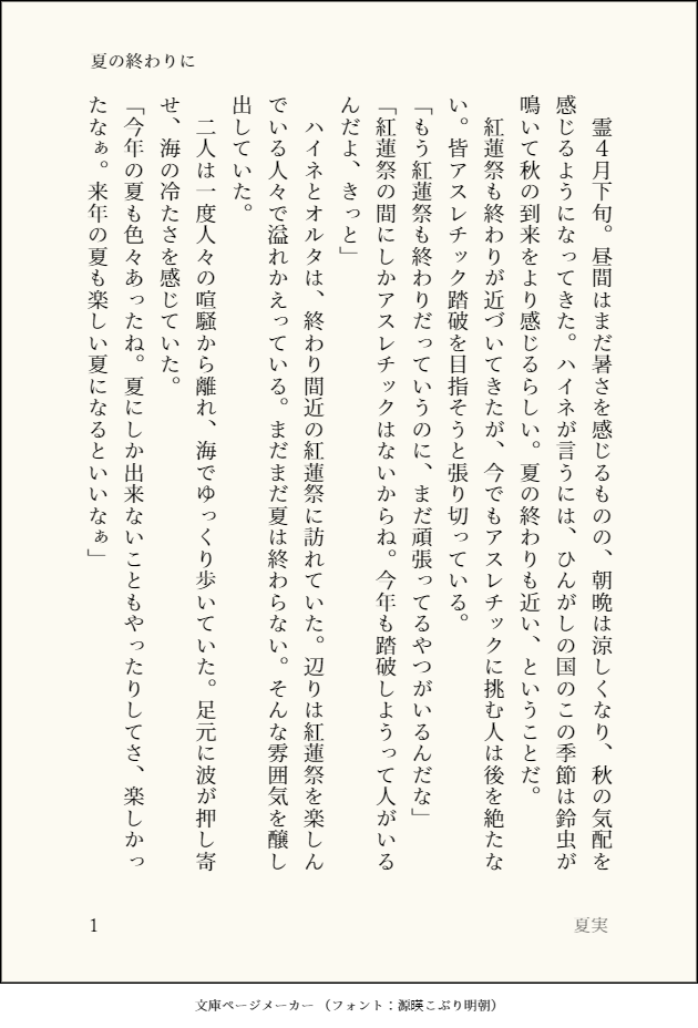 Heine_Alter919☆quiet followDONE夏の終わりを感じるハイネとオルタの話 show all(+3 images) Tap to full screen (size:630x928).Repost is prohibited Let's send reactions! freqpopularsnackothersPayment processing Replies from the creator Follow creator you care about!☆quiet follow Heine_Alter919DONEレストラン「ビスマルク」で臨時のアルバイトをするハイネちゃんの話 4 Heine_Alter919DONEハイネの誕生日を祝うオルタの話 4 Heine_Alter919DONE新生祭に思いを語るハイネの話 4 Heine_Alter919DONE紅蓮祭を楽しむハイネとオルタの話 4 Heine_Alter919DONEアイスを分け合うハイネとオルタの話 4 Heine_Alter919DONE七夕の行事を行うハイネとオルタの話 4 recommended works domdoo00meDONE漫画続きおまけ我慢できず玄関で始めちゃうしグダグダな翌朝アバブ(笑) 2 nekotamakororiDOODLE #エオルゼアのこ版深夜の創作60分一本勝負お題【武器】+60min遅刻参加お邪魔します。素敵なお題イラスト拝見して自分も描きたくなりました!占星術師の武器大好きです! nekotamakororiDOODLE #エオルゼアのこ版深夜の創作60分一本勝負お題「ロール:ヒーラー」+90min占星術師大好きなんですけど、ヒーラーと言えば白魔道士というイメージが強いです! nekotamakororiDOODLE #エオルゼアのこ版深夜の創作60分一本勝負お題「雨」+60min傘のアクションいいですよね、可愛いし nekotamakororiDOODLE #エオルゼアのこ版深夜の創作60分一本勝負【ハイドレインジャ(紫陽花)】 nekotamakororiDOODLE #エオルゼアのこ版深夜の創作60分一本勝負お題【犬】柴犬もふもふかわよいねぇ nekotamakororiDOODLE #エオルゼアのこ版深夜の創作60分一本勝負お題【エモート:暑がる】+60min持ってないので完全に想像です。アメノミハシラ待ってろよ…! nekotamakororiDOODLE #エオルゼアのこ版深夜の創作60分一本勝負お題【手を伸ばす】+60min目覚ましテーブルクロノメーターに VpQfNX48v8hpm21DOODLE幼馴染の子掘り下げてぇ〜!!!と思って描いたものと昨日過去掘り下げて描いてたもの字が恐ろしく汚い見たい人だけy/n 8