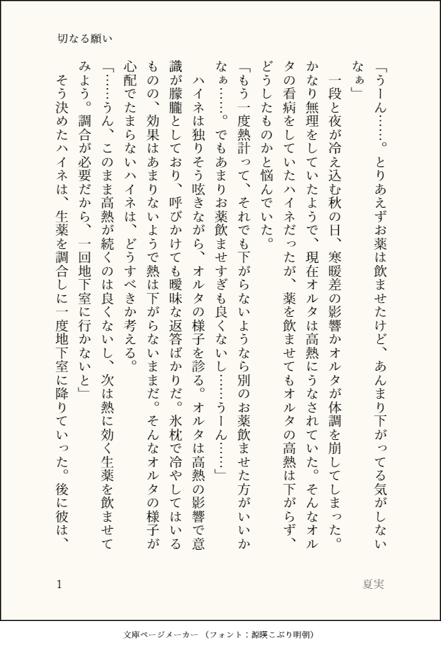 Heine_Alter919☆quiet followDONE高熱にうなされるオルタと看病するハイネの話 show all(+3 images) Tap to full screen (size:630x928).Repost is prohibited Let's send reactions! freqpopularsnackothersPayment processing Replies from the creator Follow creator you care about!☆quiet follow Heine_Alter919DONEレストラン「ビスマルク」で臨時のアルバイトをするハイネちゃんの話 4 Heine_Alter919DONEハイネの誕生日を祝うオルタの話 4 Heine_Alter919DONE新生祭に思いを語るハイネの話 4 Heine_Alter919DONE紅蓮祭を楽しむハイネとオルタの話 4 Heine_Alter919DONEアイスを分け合うハイネとオルタの話 4 Heine_Alter919DONE七夕の行事を行うハイネとオルタの話 4 recommended works monmonINFOtaking care of 4 alpha isn't an easy task.Ehehe I'm sorry, just want to make sure if you really want to see them doing "that" to aetherIf yes, then click this link:https://privatter.net/p/6707811 2 nekotamakororiDOODLE #エオルゼアのこ版深夜の創作60分一本勝負お題【武器】+60min遅刻参加お邪魔します。素敵なお題イラスト拝見して自分も描きたくなりました!占星術師の武器大好きです! nekotamakororiDOODLE #エオルゼアのこ版深夜の創作60分一本勝負お題「ロール:ヒーラー」+90min占星術師大好きなんですけど、ヒーラーと言えば白魔道士というイメージが強いです! nekotamakororiDOODLE #エオルゼアのこ版深夜の創作60分一本勝負お題「雨」+60min傘のアクションいいですよね、可愛いし nekotamakororiDOODLE #エオルゼアのこ版深夜の創作60分一本勝負【ハイドレインジャ(紫陽花)】 nekotamakororiDOODLE #エオルゼアのこ版深夜の創作60分一本勝負お題【犬】柴犬もふもふかわよいねぇ nekotamakororiDOODLE #エオルゼアのこ版深夜の創作60分一本勝負お題【エモート:暑がる】+60min持ってないので完全に想像です。アメノミハシラ待ってろよ…! nekotamakororiDOODLE #エオルゼアのこ版深夜の創作60分一本勝負お題【手を伸ばす】+60min目覚ましテーブルクロノメーターに みんみDOODLEフォゼ倉さんマンガ。2ページ1コマ目、調子に乗りすぎました。楽しかったです。 3