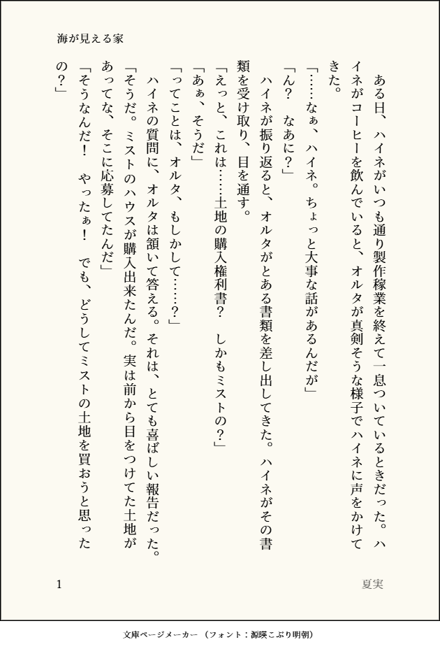 Heine_Alter919☆quiet followDONE海が見える家を購入したオルタの話 show all(+3 images) Tap to full screen (size:630x928).Repost is prohibited Let's send reactions! freqpopularsnackothersPayment processing Replies from the creator Follow creator you care about!☆quiet follow Heine_Alter919DONEレストラン「ビスマルク」で臨時のアルバイトをするハイネちゃんの話 4 Heine_Alter919DONEハイネの誕生日を祝うオルタの話 4 Heine_Alter919DONE新生祭に思いを語るハイネの話 4 Heine_Alter919DONE紅蓮祭を楽しむハイネとオルタの話 4 Heine_Alter919DONEアイスを分け合うハイネとオルタの話 4 Heine_Alter919DONE七夕の行事を行うハイネとオルタの話 4 recommended works nekotamakororiDOODLE #エオルゼアのこ版深夜の創作60分一本勝負お題【武器】+60min遅刻参加お邪魔します。素敵なお題イラスト拝見して自分も描きたくなりました!占星術師の武器大好きです! nekotamakororiDOODLE #エオルゼアのこ版深夜の創作60分一本勝負お題「ロール:ヒーラー」+90min占星術師大好きなんですけど、ヒーラーと言えば白魔道士というイメージが強いです! nekotamakororiDOODLE #エオルゼアのこ版深夜の創作60分一本勝負お題「雨」+60min傘のアクションいいですよね、可愛いし nekotamakororiDOODLE #エオルゼアのこ版深夜の創作60分一本勝負【ハイドレインジャ(紫陽花)】 nekotamakororiDOODLE #エオルゼアのこ版深夜の創作60分一本勝負お題【犬】柴犬もふもふかわよいねぇ nekotamakororiDOODLE #エオルゼアのこ版深夜の創作60分一本勝負お題【エモート:暑がる】+60min持ってないので完全に想像です。アメノミハシラ待ってろよ…! nekotamakororiDOODLE #エオルゼアのこ版深夜の創作60分一本勝負お題【手を伸ばす】+60min目覚ましテーブルクロノメーターに ナエティマスDOODLEお誕生日おめさぎ MillNataDONE『Memory of…』※ナル拓部分のみ抜粋 3226