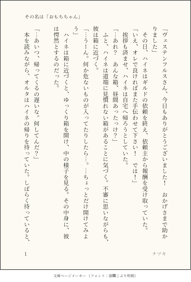 Heine_Alter919☆quiet followPASTハイネがおもちちゃん(ファットキャット)を拾ってくる話 show all(+3 images) Tap to full screen (size:630x928).Repost is prohibited Let's send reactions! freqpopularsnackothersPayment processing Replies from the creator Follow creator you care about!☆quiet follow Heine_Alter919DONEレストラン「ビスマルク」で臨時のアルバイトをするハイネちゃんの話 4 Heine_Alter919DONEハイネの誕生日を祝うオルタの話 4 Heine_Alter919DONE新生祭に思いを語るハイネの話 4 Heine_Alter919DONE紅蓮祭を楽しむハイネとオルタの話 4 Heine_Alter919DONEアイスを分け合うハイネとオルタの話 4 Heine_Alter919DONE七夕の行事を行うハイネとオルタの話 4 recommended works nekotamakororiDOODLE #エオルゼアのこ版深夜の創作60分一本勝負お題【武器】+60min遅刻参加お邪魔します。素敵なお題イラスト拝見して自分も描きたくなりました!占星術師の武器大好きです! nekotamakororiDOODLE #エオルゼアのこ版深夜の創作60分一本勝負お題「ロール:ヒーラー」+90min占星術師大好きなんですけど、ヒーラーと言えば白魔道士というイメージが強いです! nekotamakororiDOODLE #エオルゼアのこ版深夜の創作60分一本勝負お題「雨」+60min傘のアクションいいですよね、可愛いし nekotamakororiDOODLE #エオルゼアのこ版深夜の創作60分一本勝負【ハイドレインジャ(紫陽花)】 nekotamakororiDOODLE #エオルゼアのこ版深夜の創作60分一本勝負お題【犬】柴犬もふもふかわよいねぇ nekotamakororiDOODLE #エオルゼアのこ版深夜の創作60分一本勝負お題【エモート:暑がる】+60min持ってないので完全に想像です。アメノミハシラ待ってろよ…! nekotamakororiDOODLE #エオルゼアのこ版深夜の創作60分一本勝負お題【手を伸ばす】+60min目覚ましテーブルクロノメーターに 牛ハラミDOODLE大穢 2 すわんMAIKINGどーよさんとひめちゃんのガン飛ばし合いが見たい