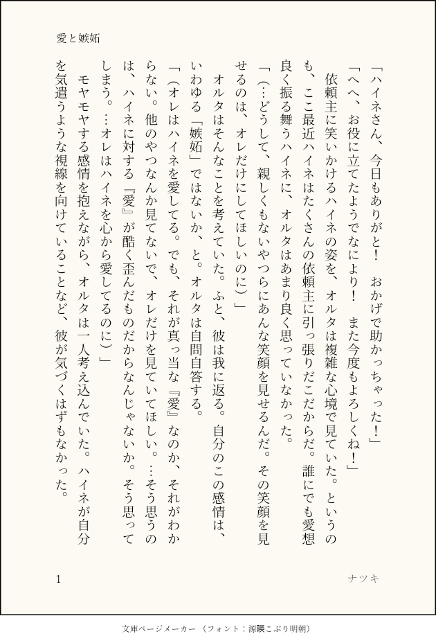 Heine_Alter919☆quiet followDONE嫉妬するオルタと愛を注ぐハイネ show all(+3 images) Tap to full screen (size:630x928).Repost is prohibited Let's send reactions! freqpopularsnackothersPayment processing Replies from the creator Follow creator you care about!☆quiet follow Heine_Alter919DONEオルタの成長に感動するハイネの話 4 Heine_Alter919DONE守護天節を楽しむ人のために頑張るハイネとオルタの話 4 Heine_Alter919DONEレストラン「ビスマルク」で臨時のアルバイトをするハイネちゃんの話 4 Heine_Alter919DONEハイネの誕生日を祝うオルタの話 4 Heine_Alter919DONE新生祭に思いを語るハイネの話 4 Heine_Alter919DONE紅蓮祭を楽しむハイネとオルタの話 4 recommended works ラストDONEヴィル監(R18)監督生♀顔ありです在学中付き合ってて卒業後一年間監督生が身を引いて隠れてたのをヴィルが見つけてホテルに連れ込んでいきなり突っ込む短い小話です成人済フォロワー様のみでよろしくお願いしますm(_ _)m 7 nekotamakororiDOODLE #エオルゼアのこ版深夜の創作60分一本勝負お題【武器】+60min遅刻参加お邪魔します。素敵なお題イラスト拝見して自分も描きたくなりました!占星術師の武器大好きです! nekotamakororiDOODLE #エオルゼアのこ版深夜の創作60分一本勝負お題「ロール:ヒーラー」+90min占星術師大好きなんですけど、ヒーラーと言えば白魔道士というイメージが強いです! nekotamakororiDOODLE #エオルゼアのこ版深夜の創作60分一本勝負お題「雨」+60min傘のアクションいいですよね、可愛いし nekotamakororiDOODLE #エオルゼアのこ版深夜の創作60分一本勝負【ハイドレインジャ(紫陽花)】 nekotamakororiDOODLE #エオルゼアのこ版深夜の創作60分一本勝負お題【犬】柴犬もふもふかわよいねぇ nekotamakororiDOODLE #エオルゼアのこ版深夜の創作60分一本勝負お題【エモート:暑がる】+60min持ってないので完全に想像です。アメノミハシラ待ってろよ…! nekotamakororiDOODLE #エオルゼアのこ版深夜の創作60分一本勝負お題【手を伸ばす】+60min目覚ましテーブルクロノメーターに Heine_Alter919DONE豆まきをするハイネとオルタの話#エオルゼアのこ版深夜の創作60分一本勝負お題「豆」 4