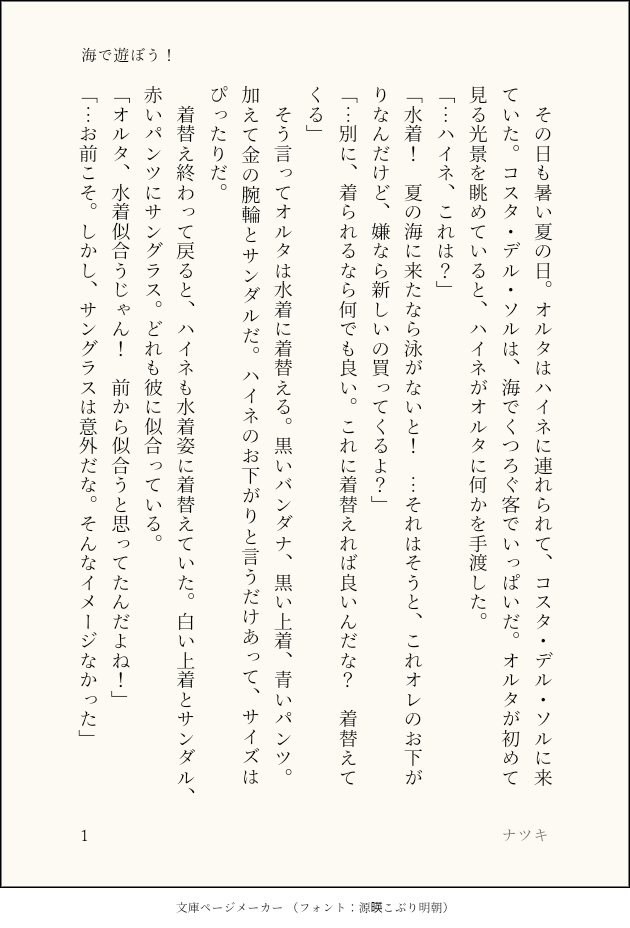Heine_Alter919☆quiet followDONE海で遊ぶハイネとオルタ show all(+3 images) Tap to full screen (size:630x928).Repost is prohibited Let's send reactions! freqpopularsnackothersPayment processing Replies from the creator Follow creator you care about!☆quiet follow Heine_Alter919DONEオルタの成長に感動するハイネの話 4 Heine_Alter919DONE守護天節を楽しむ人のために頑張るハイネとオルタの話 4 Heine_Alter919DONEレストラン「ビスマルク」で臨時のアルバイトをするハイネちゃんの話 4 Heine_Alter919DONEハイネの誕生日を祝うオルタの話 4 Heine_Alter919DONE新生祭に思いを語るハイネの話 4 Heine_Alter919DONE紅蓮祭を楽しむハイネとオルタの話 4 recommended works いそふDOODLE【女体化注意】イデアズだけどにょたでショタでロリで蛸で捏造しかないシリーズ。設定とかはゆるゆるなので雰囲気で見てください。蛸娘とシュラ家の坊ちゃんがイチャイチャしてほしいだけ。 12 kmtakz_0303DOODLE❄️を誘惑する🔥いいと言うまで我慢できるか nekotamakororiDOODLE #エオルゼアのこ版深夜の創作60分一本勝負お題【武器】+60min遅刻参加お邪魔します。素敵なお題イラスト拝見して自分も描きたくなりました!占星術師の武器大好きです! nekotamakororiDOODLE #エオルゼアのこ版深夜の創作60分一本勝負お題「ロール:ヒーラー」+90min占星術師大好きなんですけど、ヒーラーと言えば白魔道士というイメージが強いです! nekotamakororiDOODLE #エオルゼアのこ版深夜の創作60分一本勝負お題「雨」+60min傘のアクションいいですよね、可愛いし nekotamakororiDOODLE #エオルゼアのこ版深夜の創作60分一本勝負【ハイドレインジャ(紫陽花)】 nekotamakororiDOODLE #エオルゼアのこ版深夜の創作60分一本勝負お題【犬】柴犬もふもふかわよいねぇ nekotamakororiDOODLE #エオルゼアのこ版深夜の創作60分一本勝負お題【エモート:暑がる】+60min持ってないので完全に想像です。アメノミハシラ待ってろよ…! nekotamakororiDOODLE #エオルゼアのこ版深夜の創作60分一本勝負お題【手を伸ばす】+60min目覚ましテーブルクロノメーターに