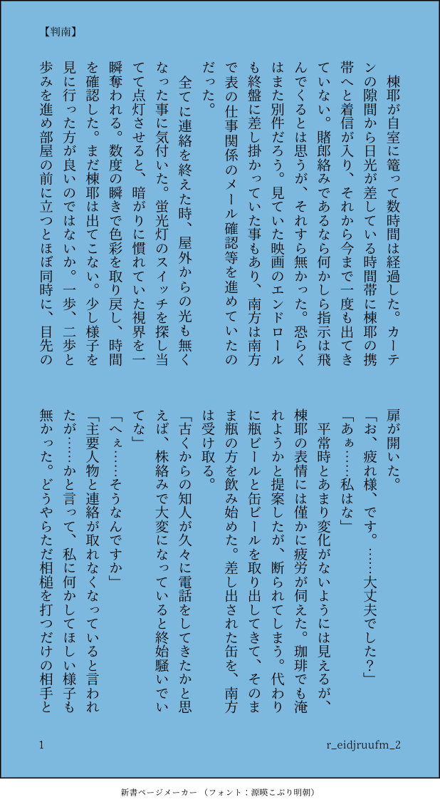 【判南】ピン!!!!!と浮かんだので書いてみたんですが、いつもの如くいい感じに補完しながら見ていただけたら大変助かる何かが生まれてしまいました……はんぢはこんな風にはならんやろ……て思いながら書いたので、色々目を瞑ってやってくださいまし……