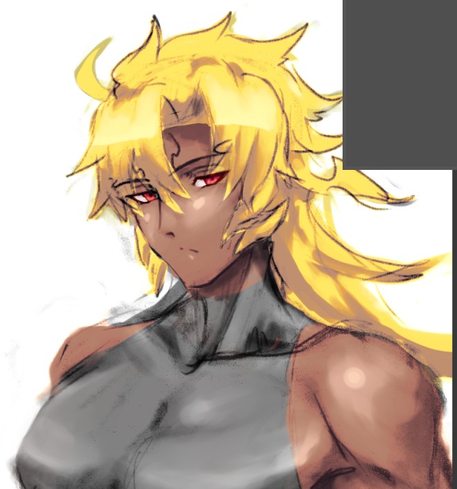 パーツごとにグラデーションマップで色を付ける手法を試してみたけど、ワイの場合はグリザイユ画法やると境界が曖昧になりがちだから難しいかもしれぬ。グラデーションマップのマスクが重なると意図していない明暗になるから……