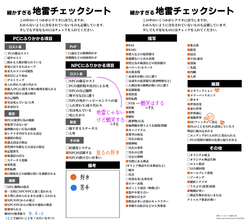 TRPG010☆quiet followMEMO地雷チェックシート Tap to full screen (size:2276x2048).Repost is prohibited Let's send reactions! freqpopularsnackothersPayment processing Replies from the creator Follow creator you care about!☆quiet follow TRPG010SPOILERCoC「先生」ネタバレあり色々遊んだやつです 5 TRPG010SPOILERアイラスの双眼 ネタバレ絵 3 TRPG010SPOILERアイラスの双眼ネタバレ そうだ!餃子パーティしようぜ!茶番 2 TRPG010SPOILERパンドリネタバレ TRPG010SPOILERPUNK DREAM, TERROR NIGHTネタバレ 8 TRPG010SPOILERカノヨ街 ネタバレ