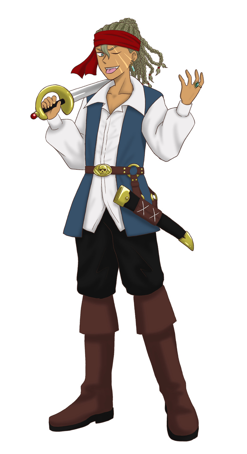 メンタルつよつよ海賊お兄さんです誰とも仲良くなれなさそう~!名前の由来は「Sieg」がドイツ語で勝利って意味で、「Knot」は船の速度の単位から。「Liebbing」の子と肌と髪の色が同じだったり名字が同じだったりするけど特に関係ないですそもそも世界線が違うからね!