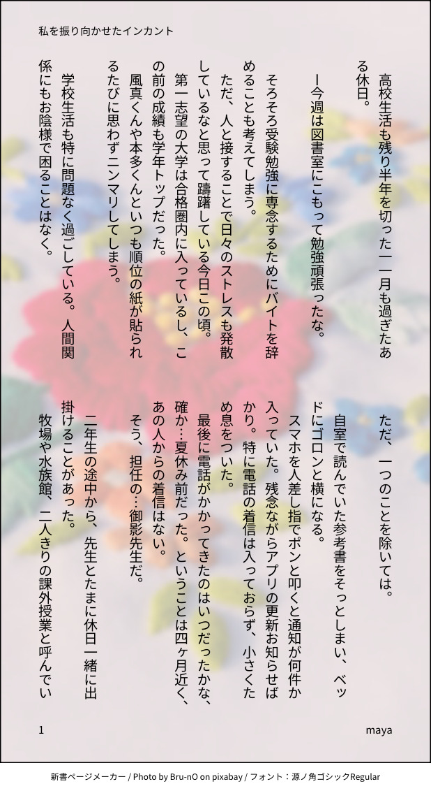 mayaringo2455☆quiet followDONEときメモGS4。御影←マリィ。話に御影先生は出てこないよ。マリィの独白。先生√やっている時に私自身がこんな感情になって(ちょっとネタバレ気味になるからこれ以上はお口ミッフィー)思わず創作したやつ。ちなみにGS4は七ツ森くん推しです(聞いてない) show all(+2 images) Tap to full screen (size:618x1132).Repost is prohibited Let's send reactions! freqpopularsnackothersPayment processing Replies from the creator Follow creator you care about!☆quiet follow mayaringo2455PASTスタオケ朔唯。夏っぽーいネタ。結局キャラスト最後まで読んでないや…そろそろ読もうね…もうサ終から半年なの…早い🥲 4 mayaringo2455PASTアンジェリークルミナライズ。ジルアン。これ途中までしか文庫メーカーに作成してないから、微妙なとこで終わります。続きは…気が向いたらこっちに移動するかも(支部にはフルであげてる) 3 mayaringo2455PASTアンジェリークルミナライズ。ジルアン。ほんっっとにゲーム発売当初のはまり具合やばやばでしたね。めんどくさい男が好き🥺← 4 mayaringo2455PASTスタオケ刑唯。温泉イベントの時に浮かんだネタ。イベント前に創作したからどんな旅館に泊まるか分からなかったから、妄想で。 4 mayaringo2455PASTスタオケ朔唯。森の広場でほのぼの。 4 mayaringo2455PASTスタオケ。初期の頃の温泉イベントネタ。香坂先輩と仲良く温泉入る唯ちゃんな話☺️ 4 recommended works コソバ ユイ。MAIKINGちょっとしたif世界。どれが誰かな。 ベビーチーズDONEロゴス先生 いしるDONEモルモルクリスマス🎄メリークリスマスモル🎁 2 家の屋根飛んでったPROGRESSぎゃっくん進捗 優夢🐬🐬DOODLE再投稿鳴保 2 y_ktrh48INFO最高最高最高のクリスマスプレゼント‼️🎁この方の描くムキムキが好きでムキムキなでっけー兄弟頼んだんですが、めちゃくちゃかっこ良…😭🫶✨2人とも仕草似てるの可愛くないですか…一緒に育ったから、こういうところが似たのかなって笑顔になった☺️そしてすごく、幸せそう…嬉しいお互い妻子持ちなんだけど、皆が寝てから2人でゆっくり過ごしてるのかなとか色々妄想してる…兄弟だけの時間、ありがとう グラスMEMOCoC「毒吐」KP:るん~さんPC/PL:鷺沼 ノア/グラス-エンド1- kiyota_tnprDOODLEエロ練習 EGODOODLEブラザーシップ状態異常双子以外は全員描いたことない子にしてみたよ!ネタバレがあるので、真ん中のアレを見るのはクリア後推奨。明時守さんのイメレスお借りしました、ありがとうございます🙏💓 2