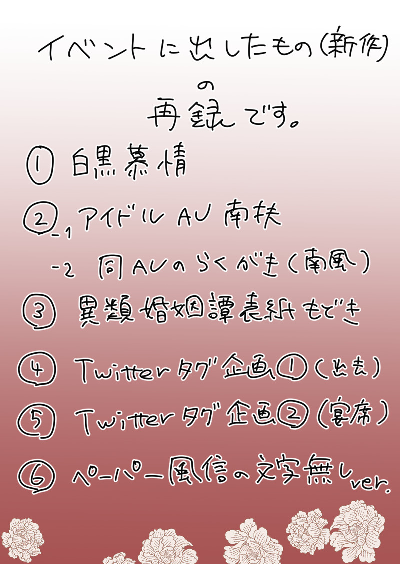 awaawaburo☆quiet followPAST風情韻事2で展示していたもの(新作)や、Twitterのタグ企画に投稿したもののまとめです。最後の風信くんの絵は(文字入りの方ですが)4月17日14時頃までネップリ可能です。 show all(+7 images) Tap to full screen (size:1032x1457).Repost is prohibited Let's send reactions! freqpopularsnackothersPayment processing Replies from the creator Follow creator you care about!☆quiet follow awaawaburoDONEあみだ企画🥹攻め:慕情受け:南風シチュお題:ふぇらといことで、慕南の18禁おふぇらーりです。※攻めフェ10月31日22時から閲覧できます。パスワードは鍵垢でお知らせしたものになります。(パスワードに関する問い合わせには回答しません) awaawaburoDOODLEぶるぽんまとめ。10月25日分まで。海にいったぶるぽん、ハートの日ふやぬい、バニーの日などなど。 9 awaawaburoDOODLE🛩️AUまとめ。3~5枚目は繋がってます。玄真航空、南陽航空両方います。 18 awaawaburoDOODLEぶるぽんまとめ。6月6日分まで。最後だけみゃおちんぬいが混じってます🐈⬛💕 8 awaawaburoDOODLE🛩️AUまとめ。基本的に風南。1枚事故ちゅーする副操縦士ズが混じってます😂 14 awaawaburoDOODLE⛪😈AUまとめ。5月14日分まで。⛪南陽や⛪玄真もちらほらいます。髪型チェンジネタとかメイドの日とか。 14 recommended works StArtemisiaDONE微博怎么连线稿都夹啊 K1N4C0MOURNING汁描いて飽きちゃったモブ🌳のつもりでした POI11086651DOODLEcredits to haniax also like i said don't go after haniax for her old stuff 7 らとぴ🐍絵練習中DOODLE過去の線画塗り直し 4 犬鳳凰 -いぬほう-DONE【しんでなんかないよ】初恋性ストックホルム症候群継続 PC— 一ノ瀬 暁人 表情差分 32 sucre_bitterMEMO nsinotDONE太妹 r18では無いけど注意 2 NNLDOODLE鰯と柊 現行未通過✖あげてないもの 3 11039_skPROGRESSちん18 y/n 2