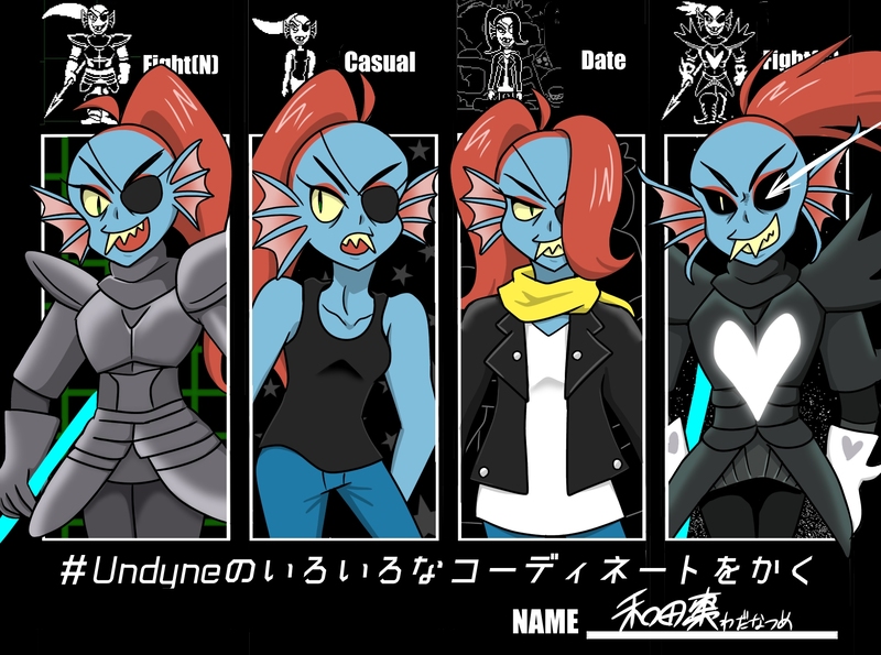 Undyneのいろいろなコーディネートをかく