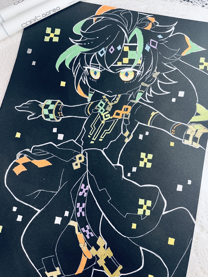 黒の画用紙にアクレア使ったら楽しすぎたので、アナログペンお絵描きが沼
