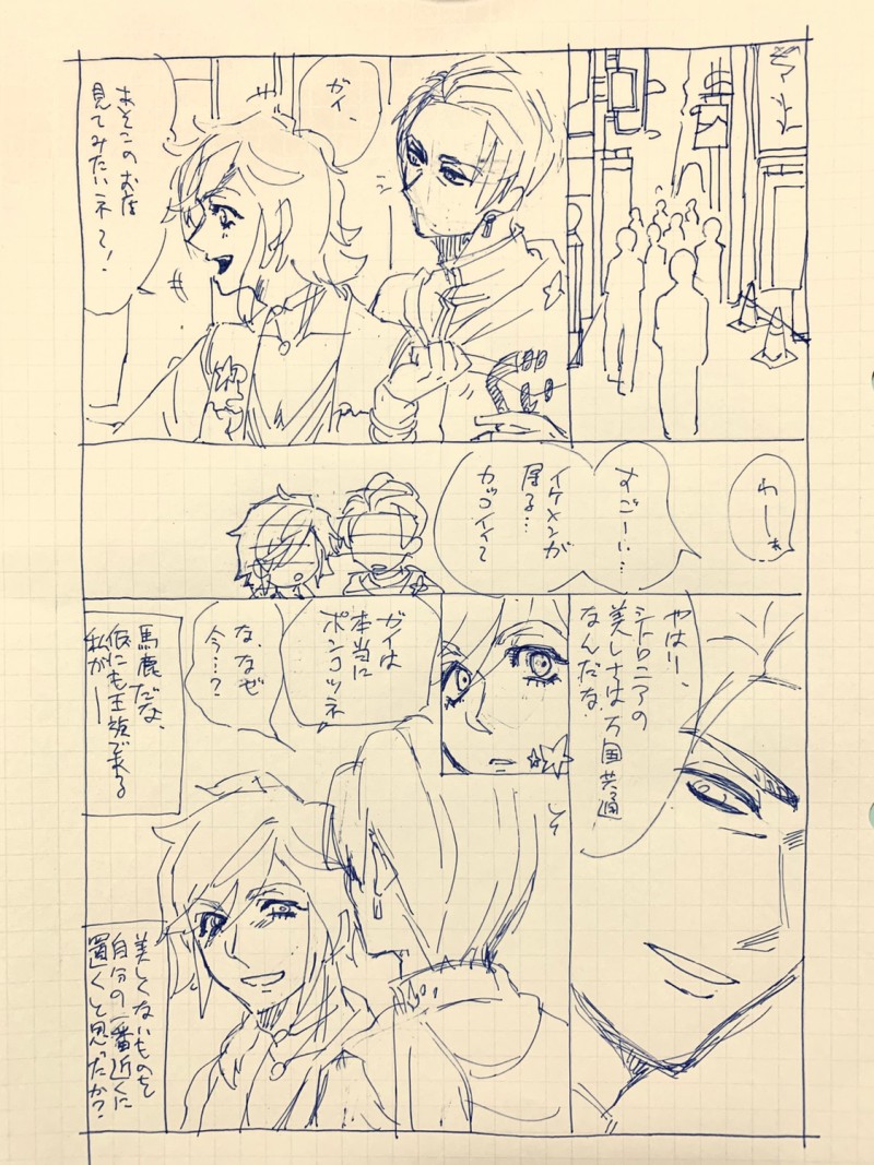 ingamori☆quiet followDOODLE【シトガイちゃん落描き漫画】ガイさんとシトロニアはお互いにお互いの事を美人だと思い合っていたら良いなと言う話。シトロニアは美意識きっと高いので… #A腐リー aRotary #シトガイ #漫画 cartoon ##清書したい Tap to full screen (size:1124x1500).Repost is prohibited Let's send reactions! freqpopularsnackothersPayment processing Replies from the creator Follow creator you care about!☆quiet follow ingamoriPROGRESSげいつくん。背景ジオウカラーにしてまった。隣にそうごくん描いてるからね…補完計画のマゼンタ回大好きです。 ingamoriDONE 2 ingamoriDONEシトロニア、誕生日おめでとう。 ingamoriPROGRESS攻ロニア(17)。 ingamoriPROGRESS「シトロニアは、美しいな…」って自分の中のガイ・ニシキが騒ぎ出すんですよね。これは現在ロニア。 ingamoriDOODLEねむいザフラ。 2 related works 16yvi_DOODLEみすつむ(彼シャツ的ななにか)🌙「(いや、確かに元々ゆったりした服だと思ったけど…俺が着るとさらに大きい気が……)」 じょなDOODLE⚠️臣十です。描きたいところを描き殴るスタイル。最近横顔が上手くかけてうれしい 16yvi_DOODLE一つ前のみすつむおまけ 2 22_1_u_bokuminDONE※太幸太 ingamoriPROGRESSべろちゅー 16yvi_DONEイベントありがとう…(イベントの内容等とは一切関係ありません)お衣装がどちらも素敵だったので…みすつむでもお互いに素敵だねって言い合って欲しいです*1枚追加しました(23.01.07) 3 じょなDOODLEOh…臣さん十座くんのキス待ち顔watching…カワイイ、カワイイネ…(臣十) 16yvi_DONE花婿バトルロイヤルアゲインネタです昨年のジューンブライドイベントは最高のみすつむの幻覚を拝めて最高でした… 2 じょなDOODLE⚠️臣十です。描きたいところだけ描きました。 recommended works タダヨシ💘DONE #A3! #兵頭十座 ウシ十座くん〜〜💖🐮💖🥛✨ 真哉子DOODLEデフォルメ推し そう3DONE誉さん誕生日おめでとう~! enchahaMOURNING #A3! #月岡紬 ingamoriPASTお誕生日ガイさんの再掲。雄っぱい雄っぱい。 73_kryDONE三好くんの愛車妄想絵です! 柳里 碧DOODLEエーステ秋冬(千秋楽配信)感想(最推しの月岡紬関係のみ) ly_yonechiDOODLE真澄誕+4月まとめ4月あんまり描いてないなぁ…3月まとめに真澄の誕生日絵入れ忘れておりました💦 5 73_kryDONE花火 / aiko三角の目をした羽根ある天使は恋のしらせを聞いて
