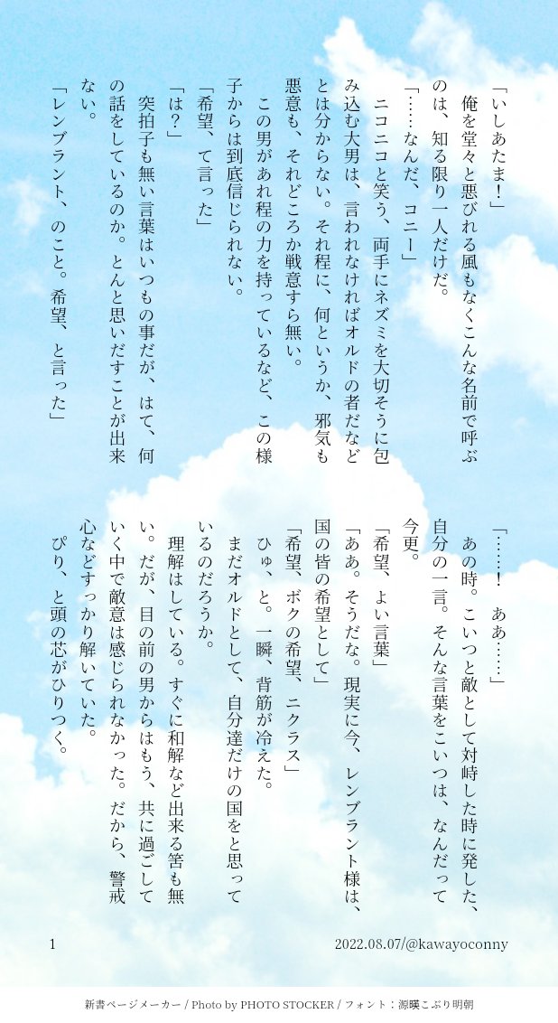 kawayoconny☆quiet followSPOILERコニーとルーク(後日談捏造注意)希望、の言葉きっとコニーにとって特別だったんだろうな…昔ニクラスとの会話であったのかな… ##エターナル2 show all(+1 images) Tap to full screen (size:618x1132).Repost is prohibited Let's send reactions! freqpopularsnackothersPayment processing Replies from the creator Follow creator you care about!☆quiet follow kawayoconnySPOILER大晦日/コニーとニクラウスオルドに年始を祝う文化はあるのかな…と思って書き納め!!コニーに出会って🦁くんを好きになってらんぺくん達を好きになったので、本当にコニーありがとうの気持ち✨ 2 kawayoconnySPOILER年賀状/覆面…佐山毎年律儀に書いてそうなんだよね佐山くん 2 kawayoconnySPOILER良いお年を/覆面…佐山佐山くんのプレゼントチョイス微妙だと愛しい kawayoconnySPOILERあたたかな部屋/覆面…佐山殺風景な部屋にいそう実家の暖かさにふと笑顔になってほしい kawayoconnySPOILER空の向こう/覆面…佐山お母さんと仲良さそう 2 kawayoconnySPOILERハガキ/覆面…佐山世界の広さを楽しみそうこの間のこれの続き recommended works MinoDOODLE初期チェズモク R18来自友人的一次初期设定口嗨:初期默真在为人打抱不平时遇到困难求助于情报屋的初期切斯雷,切斯雷认出了眼前这个人是杀父凶手,于是故意提出天价情报费,默真付不起但是切斯雷说可以用屁股付钱(???!)总之是个没头没尾的5p爱爱漫画…password:18↑?(y/n) 6 komai_46DONE三木浜このふたりの距離感意味わかんないね。 2 すみ🐕DOODLE落書きウホ のっくすDOODLEルイ主人様のみせつけすけべがよかったため… patchy_morDOODLE🐍: ปลุกข้ามาทำไม⚡️: ลูกเราหนาวจนจะแย่แล้ว ทำไมเจ้าไม่กกไข่🐍: นี่เจ้ากำลังพูดแบบนั้นกับคนที่ไม่ได้นอนทั้งคืนเพราะเจ้างั้นเหรอ ซูซาโนะโอะ 2 usanomituamiCAN’T MAKE kmrnrrnkrnrnDONEホテセンげんみ❌ 弊兵隊💂♂️のあれの差分だよ〜 soniemuDOODLEとんじゃったそすいさん 庭_1231DOODLEコアラ