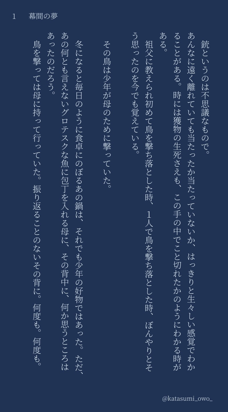 かたすみ gkmにハマり、尾に沼った結果、細々書き始めました。箱で好き+雑食なので書くキャラはいろいろ。内容も原作軸の妄想、原パロ、夢、腐と雑多。対象も年齢制限無しから18禁まで。ゆるゆると楽しんでます。 ☆quiet follow Yell with Emoji POIPOI 7