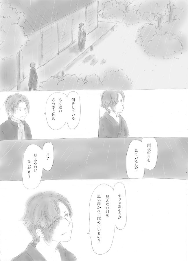 ななめ☆quiet followMAIKING3年前のとうらぶ描きかけ。このあとどういう風に話を進めるつもりだったのか、まっっっったく思い出せません。オオカネヒラが来た今の状況では、思い出したところで続きは描けないだろうけど。 ##刀剣乱舞 show all(+1 images) Tap to full screen (size:650x900).Repost is prohibited Let's send reactions! freqpopularsnackothersPayment processing Replies from the creator Follow creator you care about!☆quiet follow ななめDONEローズフェスティバルで展示していた『アキラとマサ』の漫画です。散歩中に見つけた野バラに手を伸ばすと……。4枚目の画像は、キャラ紹介もかねて最後のページに載せていたものです。 4 ななめDONE創作BL webイベントの無配DLペーパーに載せた漫画。 ななめDONE言紡弐で展示していたお話です。800字小説……といいつつ、ちょっとオーバーしてました。800字に納めるの難しい!カプなし・ほのぼのです。 848 ななめDOODLE言紡弐カウントダウン絵まとめ。描くの楽しかった! 7 ななめArtSummary2022テンプレお借りしました。 ななめReuse Christmasクリスマスツリーを準備する二人。 4 recommended works 落書きマンDONE ななめDOODLEはっぴーばれんたいん!!#バレンタインデーだしうちのバカップルにいちゃついてもらう はやせ慶PAST連載中のカウントダウン絵 3 かちいろDONE清書できた~ ちりまめTRAININGアニメいいなあ~ぜんぜん期待してなかったけど楽しんで見てます。森先生も出てほしかった・・・エアアニメグッズ描いとく。 辺境の沼地のゆりあTRAININGくめちゃんは「1年に1回しか会えないなんて耐えられないので僕も松岡の側で機を織ります(器用貧乏)」って言いそうな感じだよね 0603arisuPAST【創作BL】数年前に描いた過去の吸血鬼のネーム漫画。途中から始まって途中で終わります… 16 ucha_rkrnPAST利こまと神社不破の落書き 2 knkmMOURNING
