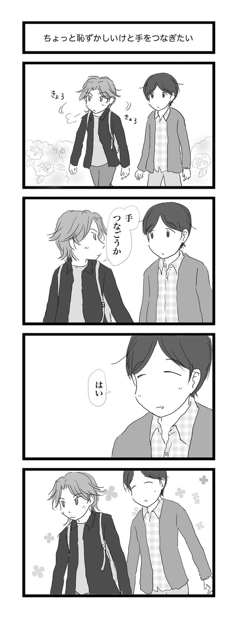 ななめ☆quiet followDONE27歳と36歳で手をつないで照れるんじゃなーい。でも多分この二人はまだまだこんな感じです。(2020.06.05) #創作BL Original Bl #アキラとマサ akiraAndMasa ##アキラとマサ Tap to full screen (size:1168x3000).Repost is prohibited Let's send reactions! freqpopularsnackothersPayment processing Replies from the creator Follow creator you care about!☆quiet follow ななめDONEローズフェスティバルで展示していた『アキラとマサ』の漫画です。散歩中に見つけた野バラに手を伸ばすと……。4枚目の画像は、キャラ紹介もかねて最後のページに載せていたものです。 4 ななめDONE創作BL webイベントの無配DLペーパーに載せた漫画。 ななめDONE言紡弐で展示していたお話です。800字小説……といいつつ、ちょっとオーバーしてました。800字に納めるの難しい!カプなし・ほのぼのです。 848 ななめDOODLE言紡弐カウントダウン絵まとめ。描くの楽しかった! 7 ななめArtSummary2022テンプレお借りしました。 ななめReuse Christmasクリスマスツリーを準備する二人。 4 related works 兎守 優(旧:内山)DONE人間嫌いな特殊捜査員の吸血鬼×崖っぷちな搾取される贄刑事 捜査協力の対価は、血液の供給。この男の不可思議な魅力に当てられ、刑事は次第に、彼に全てを捧げていくのだが。 24345 3kroman2PAST王様と黒騎士。二人が一緒の絵中心。#創作BL #オリジナル 3 ななめDONE過保護なアキラによって、もこもこにされるマサ。 3kroman2PAST王様と黒騎士の二人セットに入れ忘れた絵。眠り続ける王様の見る夢。#創作BL #オリジナル 3kroman2PAST王様と黒騎士、キャラ単体絵色々。#創作BL #オリジナル 4 たかすんDOODLE昔描いたやつ たかすんDOODLE BLのにしなPROGRESS受君の雄っぱいが上手く描けたから報告です!3pでモブに回されている幸の薄いうちの創作男子君。いつ幸せにしてくれるんだと、苦情の嵐をフォロワーさんから受けていますが、まだ地獄の中です。頑張って幸せにする次第です。 2 linco_akutaDOODLEとりあえず recommended works B_J_migiDOODLEめちゃ昔の絵。 #文アル ななめDOODLE 3 tikubeeDOODLE #創作BL tsumirekanaDOODLE #文アル 2 kokurowDONE浴衣、みんな可愛かったなぁ…と思いつつ。( モリモリ先生とサイくん ) kokurowPAST『 一燈 』より / dzi ぬばたPAST文アル過去絵(デジタル)です 12 chinequoPAST劇島のバースデー2020 やなけんDONE「こんっ。」