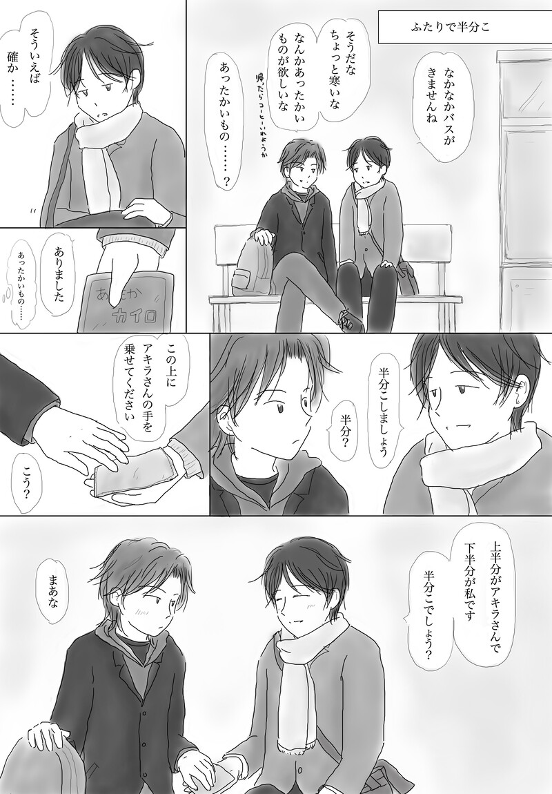 ななめ☆quiet followPAST9.アキラ大学三年・冬(3) #創作BL Original Bl #アキラとマサ akiraAndMasa ##repost2410 show all(+7 images) Tap to full screen (size:2400x3450).Repost is prohibited Let's send reactions! freqpopularsnackothersPayment processing Replies from the creator Follow creator you care about!☆quiet follow ななめDONEローズフェスティバルで展示していた『アキラとマサ』の漫画です。散歩中に見つけた野バラに手を伸ばすと……。4枚目の画像は、キャラ紹介もかねて最後のページに載せていたものです。 4 ななめDONE創作BL webイベントの無配DLペーパーに載せた漫画。 ななめDONE言紡弐で展示していたお話です。800字小説……といいつつ、ちょっとオーバーしてました。800字に納めるの難しい!カプなし・ほのぼのです。 848 ななめDOODLE言紡弐カウントダウン絵まとめ。描くの楽しかった! 7 ななめArtSummary2022テンプレお借りしました。 ななめReuse Christmasクリスマスツリーを準備する二人。 4 related works 兎守 優(旧:内山)DONE人間嫌いな特殊捜査員の吸血鬼×崖っぷちな搾取される贄刑事 捜査協力の対価は、血液の供給。この男の不可思議な魅力に当てられ、刑事は次第に、彼に全てを捧げていくのだが。 24345 3kroman2PAST王様と黒騎士。二人が一緒の絵中心。#創作BL #オリジナル 3 BLのにしなPROGRESS受君の雄っぱいが上手く描けたから報告です!3pでモブに回されている幸の薄いうちの創作男子君。いつ幸せにしてくれるんだと、苦情の嵐をフォロワーさんから受けていますが、まだ地獄の中です。頑張って幸せにする次第です。 2 3kroman2PAST王様と黒騎士、キャラ単体絵色々。#創作BL #オリジナル 4 たかすんDOODLE 3kroman2PAST王様と黒騎士の二人セットに入れ忘れた絵。眠り続ける王様の見る夢。#創作BL #オリジナル linco_akutaDOODLEとりあえず たかすんDOODLE昔描いたやつ ななめDONE過保護なアキラによって、もこもこにされるマサ。