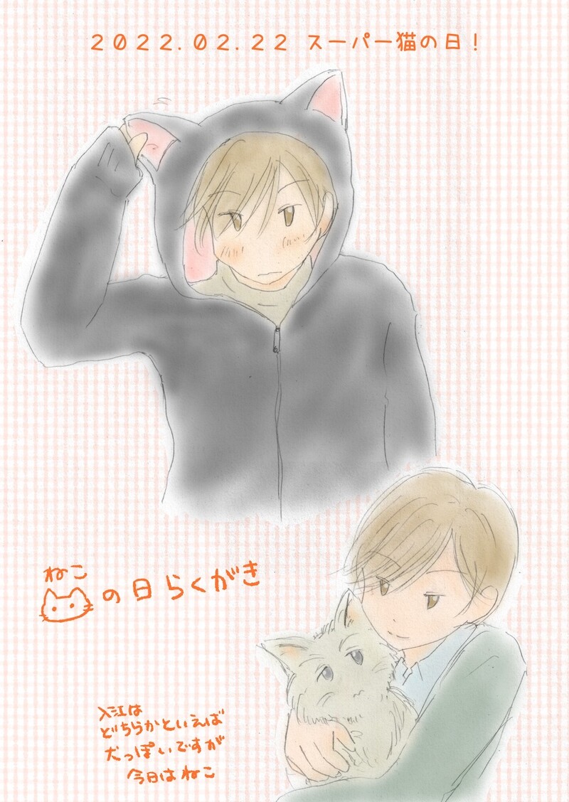 ななめ☆quiet followDOODLEスーパー猫の日!というわけで猫の日らくがき。広瀬がいくら可愛いもの好きだからといっても、猫耳パーカーは買ってきません。でも猫の日なので着せちゃった。(2022.02.22) ##広入 show all(+1 images) Tap to full screen (size:1000x1410).Repost is prohibited Let's send reactions! freqpopularsnackothersPayment processing Replies from the creator Follow creator you care about!☆quiet follow ななめDONEローズフェスティバルで展示していた『アキラとマサ』の漫画です。散歩中に見つけた野バラに手を伸ばすと……。4枚目の画像は、キャラ紹介もかねて最後のページに載せていたものです。 4 ななめDONE創作BL webイベントの無配DLペーパーに載せた漫画。 ななめDONE言紡弐で展示していたお話です。800字小説……といいつつ、ちょっとオーバーしてました。800字に納めるの難しい!カプなし・ほのぼのです。 848 ななめDOODLE言紡弐カウントダウン絵まとめ。描くの楽しかった! 7 ななめArtSummary2022テンプレお借りしました。 ななめReuse Christmasクリスマスツリーを準備する二人。 4 recommended works 千三百一DONEメモマメイカ(21)「ユウグレ ショウゼン」https://raiot.net/i/1559643047708 わこちDONEあんごとおださくの誕生日の時に描いたやつ 5 篁由月MOURNING「たまにはこってりしたものが食べたいな」ステーキじゃ駄目なの?と思った。食堂のセリフが時々メニューと合ってなくて笑ってしまう。お肉のスタンプくださった方ありがとうございます…🙏 7のかMAIKINGむちむちおしり 1104DONEたすくとたくす1個のマフラーでぬくぬく🌸 ななめPAST13.アキラ大学四年・秋(1)本人たちは隠しているつもりでも、ぜったいバレバレだと思うんですよね。 9 おまとめばこDOODLEそ~へきちゃ~~~~~~!!!! 5 なやわDOODLE なつめDONEツイッターが縦長表示になったので縦長。