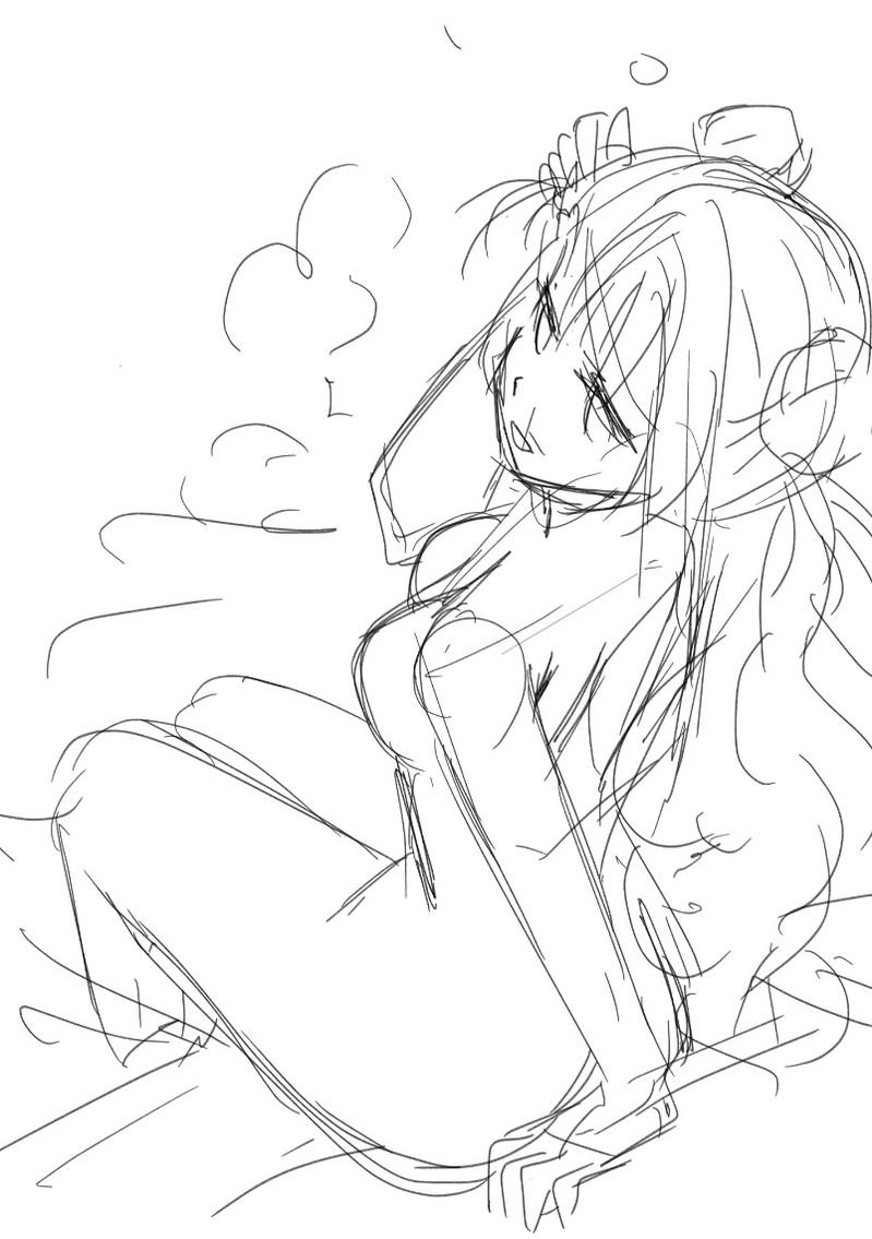 やっぱラフは楽しいいいい!温泉入ってるキャラ描きたいかも。