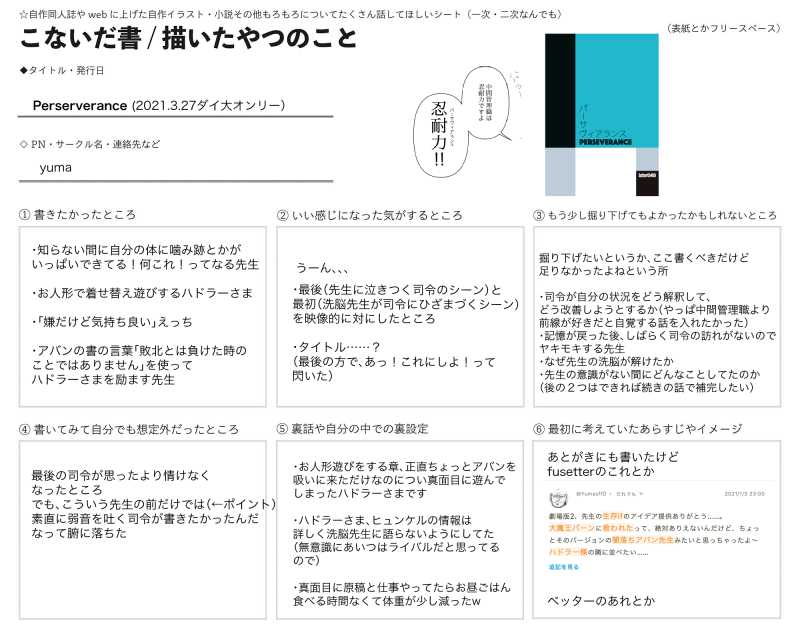 忍耐力の話のこと。裏設定みたいなのはあとがきにも書いたけど、次の話を書くための整理としても書いてみました。