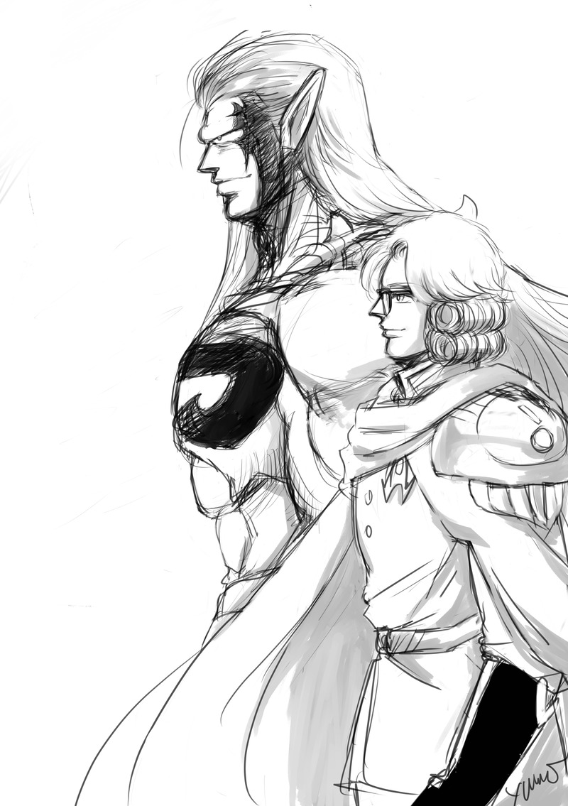 元魔王と元勇者イベントのバナー看板を見ている二人、です