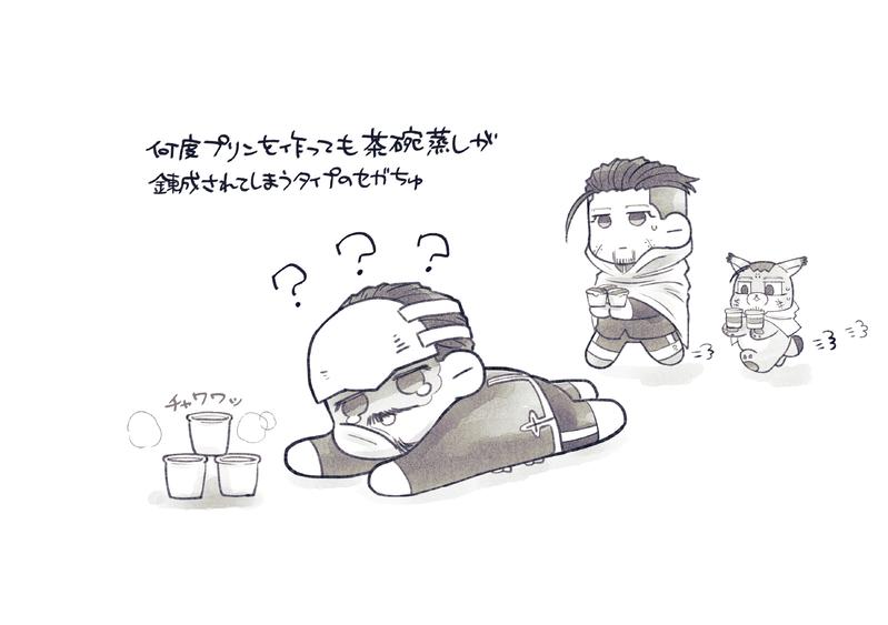 そして添付はいつまでもセ…中尉殿へプリンをお供えしないのも非道なのでogt氏達に配達して貰った、前回の続きのような謎の絵。人ogt氏の持っているのはプッチンするやつで、フォ…ogt氏の持っているのはお高い瓶のやつ。