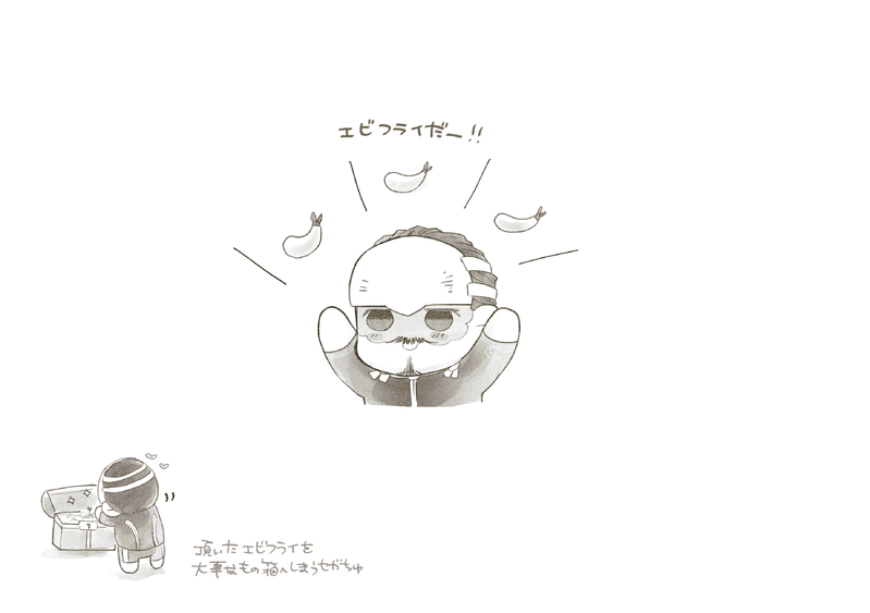 添付はエビフライの絵文字を頂けて嬉しいな~と言う絵です。もちろん、そもそも覗いて下さる方がいる事、エビフライに限らず絵文字を頂ける事がいつも超嬉しいです!!!