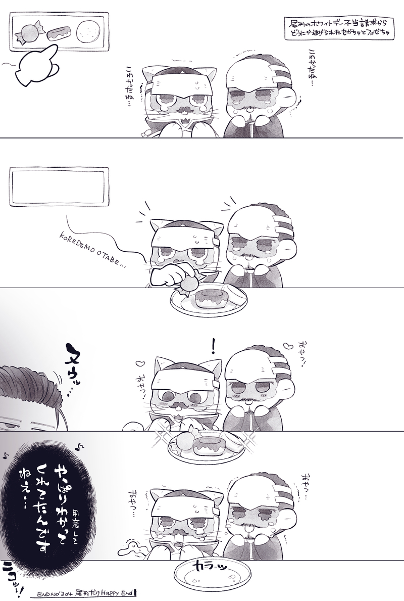 添付はホワイトデーの絵に心優しき方からお菓子の絵文字を頂けていたので中尉達へお供え(失敗)した絵。