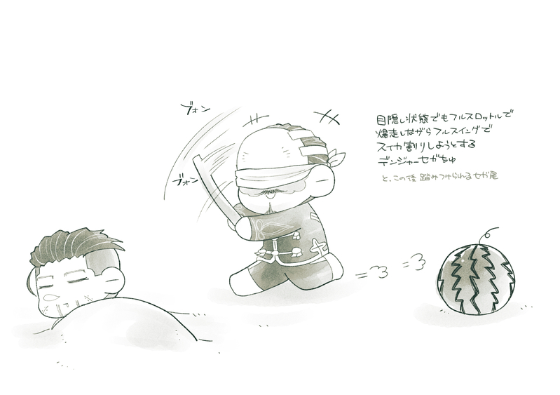 なので添付は全く関係ない元気なセ…中尉殿の落書きです。人生で一度はやってみたい事の一つだけど、泳げない自分では海レジャーに縁がなさ過ぎて実績解除出来ないまま終わりそうなスイカ割りへの憧れをセ…中尉殿へ託しました(だが割れてない)