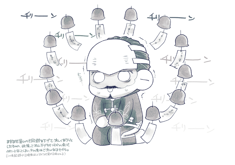 毎度ながら何も確認せず描いているので、風鈴と言うよりは鈴カステラ感が…