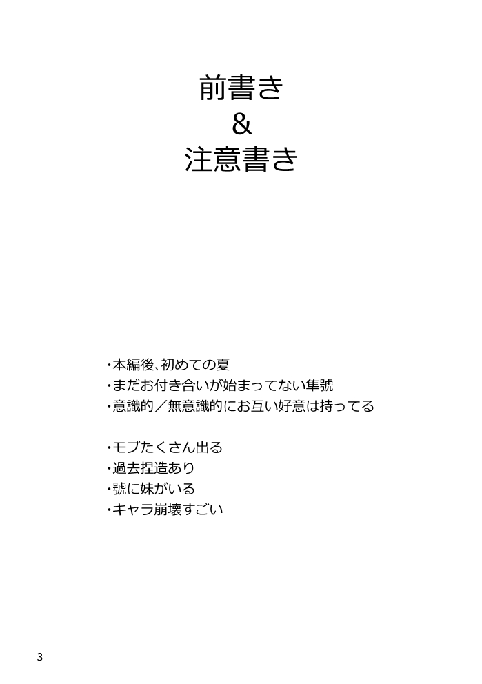 たてやまのイベント用☆quiet followPROGRESS12/15東京、1/12大阪にて頒布予定のはやご夏祭り本のサンプルです以前公開した26pまで(なんとかここまでできた)全年齢/本文38p/価格未定……まだ完成してないので出せなかったらごめんね #はやご earlyChild show all(+23 images) Tap to full screen (size:699x992).Repost is prohibited Let's send reactions! freqpopularsnackothersPayment processing Replies from the creator Follow creator you care about!☆quiet follow たてやまのイベント用PROGRESS隼號の日!3 展示⑤(R18)※18歳未満の方の閲覧は不可です。あなたは18歳以上ですか?(y/n)※共通パスワードの末尾に上記回答をつけてご入力ください。隼號本準備号第二弾。完成させて公開したかったけど、力及ばず未完成です。1ページ目の注意書きをご確認の上ご覧ください。ラスト2ページのネームの雑さに恐れおののいてください。 8 たてやまのイベント用PAST隼號の日!3 展示④(R18)※18歳未満の方の閲覧は不可です。あなたは18歳以上ですか?(y/n)※共通パスワードの末尾に上記回答をつけてご入力ください。『隼人と號の同棲性活本』ほぼ完売だから上げちゃう。DL頒布しようかと思ったけど、慣れてなくて手間取りそうだからまた今度… 30 たてやまのイベント用PAST隼號の日!3 展示③(R18)※18歳未満の方の閲覧は不可です。あなたは18歳以上ですか?(y/n)※共通パスワードの末尾に上記回答をつけてご入力ください。絵の拙さに悶えたり、性癖暴露するのが怖くて、今まで「オープンにするのはちょっとな…」とためらってたやつも出してしまう。イベントの恥はかき捨てと言いますし(言いません)。 47 たてやまのイベント用PROGRESS隼號の日!3 展示作品②前回上げたのと同じだけどまた上げとく。 13 たてやまのイベント用PAST隼號の日!3 展示①全年齢まとめ。毎度同じ内容ですいませんね、って感じなのでキャプション付けた。 102 たてやまのイベント用PROGRESSGet a Destiny2025 on web 展示作品①CP:ネオゲ隼號2025/05/03【SUPER COMIC CITY 32】東京ビッグサイトで頒布したコピー本です。白い。小話をまとめて一冊にするとき、白くなくなる予定です。 12 related works たて やまDOODLEはやごだけどはやごじゃない※手のひらサイズのご~がえっち求めてほしい…ってだけの妄想の産物※今までのはやごとは別物として見て欲しい※1ページ目でやべえなと思ったら引き返してください… 2 たて やまDOODLE本当はいくつかまとめて公開したいけど描くの遅すぎて間がもたないから上げてしまう【Pass】CP数字表記10/2追加 2 MADOGIWADONE8月5日ははやごの日!で展示した漫画ですちょっとだけ武蔵が出てきます後日談おまけ漫画が裏表紙の後に続きますパスワード→230805 (開催日でした)23.8 20 たて やまMEMO頭の中を整理。全部(仮)。・はやご愛の巣・表紙案・旅装アクスタ・小さいアクスタ・マグネット 5 sansakuPASTはやごウェディングの企画が素晴らし過ぎたあまり突発で制作したウェルカムボード(樹脂粘土)はやご末永くお幸せに💒 MADOGIWADONEはやごの日合わせでとりあえず読める形になったので展示24.8 7 たて やまDOODLE裏垢のまとめただけ一年近く上げてなくてびっくりした書き忘れた はやごです【pass】CP表記(数字) 8 たてやまのイベント用PROGRESS12/15東京、1/12大阪にて頒布予定のはやご夏祭り本のサンプルです以前公開した26pまで(なんとかここまでできた)全年齢/本文38p/価格未定……まだ完成してないので出せなかったらごめんね 24 MADOGIWAPROGRESSはやご漫画の進捗まとめ23.7〜8 12 recommended works Vahn_aaDOODLEAre you over 18? (yes/no) まさむねDONE※腐※アルパル「クリスマス後編」中編ありそうだけどすっとばして描きたいところだけ描きました🗽ガチガチの少女漫画あるぱるなので注意してください🙇💦年越しギリギリ間に合って良かった🐢2024/12/31 13 makisuzumePROGRESSヴィク勇新刊の冒頭ですいきなりやってるので進捗とか全然出せないまま作業してて流石に不安になったので良かったら見てやってくださいパスワード:Q成人済みですか?の返答(yes か noでお答えください) 2 りんごおばけTRAINING77廻議事録その③スパスタの最終廻の流れがあまりに77廻朝だったので、混乱してつい書いてしまったもの。推敲も文体の調整もなし。アンナ視点。翌朝の幕間。R指定ありませんご自由にどうぞ。今年もお世話になりました。来年もずっと同じです。またよろしくお願いします。2024.12.31 3417 白ゲコ(aktkg)DONE7周年記念ギリギリの超ギリギリ!!ありがとう……ほんとに…… 再来两碗饭DOODLE不是洁癖你就点开内含兽交/cuntboy能看的就输入密码:yes不能看就退! 3 おこでDOODLE 12 kotorikinoTRAINING緑族長の練習 hgm_gameDOODLEシャレマニおたおめ絵 9