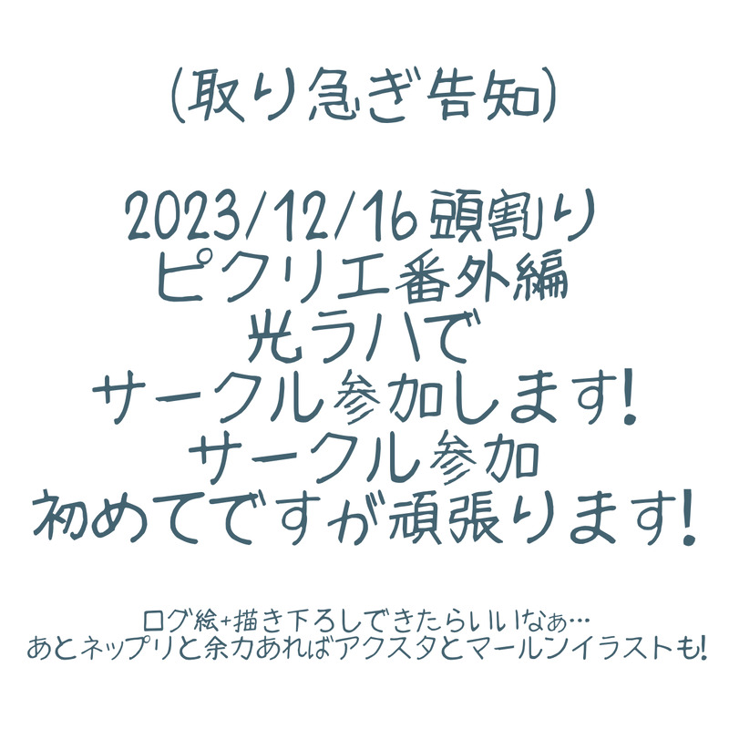 12/16の頭割りピクリエ番外編、光ラハでサークル参加します!