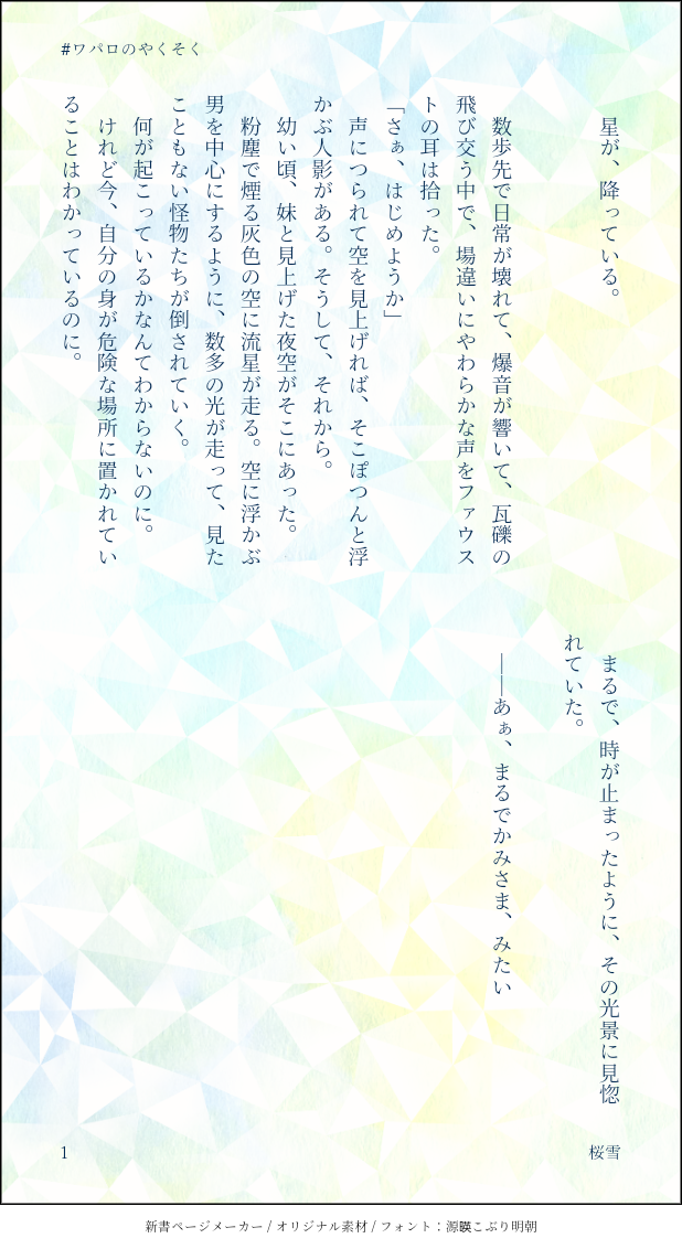 azurem00n☆quiet followDONE先日スペースに参加させていただいた「ワパロのやくそく」がとても楽しくて妄想滾ってしまったので文字に起こしてしまいました。尊敬の気持ちと袂を分かったもろもろでぐちゃぐちゃな顔してログ見るファ先生とタブレット取り上げるネロ show all(+3 images) Tap to full screen (size:618x1132).Repost is prohibited Let's send reactions! freqpopularsnackothersPayment processing Replies from the creator Follow creator you care about!☆quiet follow azurem00nPAST鉄血まとめ/CPはオルユー 14 azurem00nPAST昔書いた諏訪荒出てきたのでまとめました。(最後のやつだけ当奈良含みます。)だいぶ前に書いたので解釈違うのもありますがせっかくなので…… 9 azurem00nDONEインモラルワールドの例のところで晃牙くんの体調不良に気づく零さんのお話。(短い)零晃いいな、と思い始めたあとにMV初めて見まして、動揺のあまりノーツ叩くのミスりそうでした……… 1197 azurem00nDONE「プリズンブレイカーズ」後のお話。何番煎じかもしれないですが、やきもち零さん 6345 azurem00nDONE『OO』後のお話。晃牙くんがずっとしょんぼりめ。 3852 azurem00nDONE2部の先生会議のあと、こんな時間があったらないいなぁのレノフィガ。フィガロめちゃめちゃ仕事してるじゃん……となったのと、あなたは抱えてるひみつをどちらも話さないのか~~にたまらなくなってしまったので。 2 recommended works m5_blDOODLEブラネロ ハロウィン🎃 ongr_stDOODLE開催おめでとうございますー!遅刻ごめんなさい!ブラッドリーがイモ貰ってきた漫画です(2ページ) 2 mhyk_33_mnmskDOODLEレノフィガ ずっと描こうと思っていたネタ 7shi_oishiiDOODLEサークルカット用に描いてたけどいちゃいちゃしすぎた @ra_instDONEにょたゆりファウネロです。ファウスト♀×ネロ♀女体化注意⚠️ 1285 okome_ouDOODLEリバのネとファのファネのエッ練習シリーズなにかがおもろくなってしまったファウスト よーぐる🍄DOODLE別れ話をした次の日に店に来るブラッドリーとぶち切れるネロ(未練たらたら)な話 4217 ソウアキラDOODLEリンゼルだ‼︎リンゼルを出せ‼︎ 山がくるDONE①無惨様にとって一番やばい時代っていつ?②無惨様、中華皇帝風コスプレしてください!