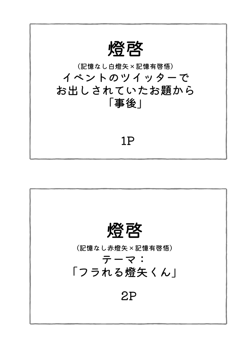 sagami☆quiet followDONE展示燈啓※全年齢・燈🤍啓 1P・燈❤️ホ 2P+おまけ1枚目は記憶の有無あんま関係なかった show all(+5 images) Tap to full screen (size:1752x2436).Repost is prohibited Let's send reactions! freqpopularsnackothersPayment processing Replies from the creator Follow creator you care about!☆quiet follow sagamiDONE展示燈啓※全年齢・燈🤍啓 1P・燈❤️ホ 2P+おまけ1枚目は記憶の有無あんま関係なかった 6 sagamiINFO9/20 23:00頃まで ローソン、ファミマ、ポプラユーザー番号 6WWK8ZCGZ9シール用紙でフレークシールみたいにするのおすすめです! 2 sagamiDOODLE燈啓だけをまとめた再録 9 recommended works po_DONE断っちゃったエの話※イベスト完結前に書いたため違う部分があります 3 klikartplusDOODLEHandjob! Implied dragon + 2D Neuvi ✌️🌧️ hyukksy0DOODLEI want he pregnant ♡#dokjoong 2 yuzu_iaiaMEMOCoC「烏が群れては、無彩色」エンド#にて全生還!めっっちゃキツかったけど楽しかったーーーー!!!!🥳💕💕もう、めちゃ自陣らぶい。また継続行きたいなぁ……。遊んで頂きありがとうございました!良い年越しが出来ますわ! 5 やさし茶REHABILI piyoman_pandaPAST美咲くんフィギュアIF表情妄想的な 7 @iuj_qpDOODLE前描いてた好きなところ切り抜き _rikuko_DOODLE騎士学校制服の練習描きに色つけたものル・サント幼馴染とクレヴス組(妄想)ガスパル・リゼット・アニエスの学生生活を妄想してました 2 goma_231MEMOBL相性診断で遊んだ納配 誕生日差分もある! 13