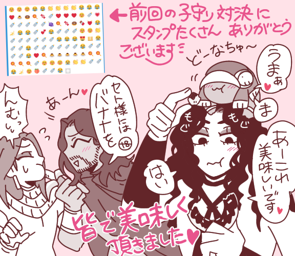 青ノ鷺(アオサギ)☆quiet followDOODLEベビーホルチュと御礼!前回のベビホル子守り対決に沢山のスタンプありがとうございます!おやつ沢山頂いたので皆でもぐもぐ!(*´꒳`*)🍩🍮🍇🍬🍭🍑🍫🍌 ##エネアド show all(+4 images) Tap to full screen (size:576x500).Repost is prohibited Let's send reactions! freqpopularsnackothersPayment processing Replies from the creator Follow creator you care about!☆quiet follow 青ノ鷺(アオサギ)MEMO一部の子供アヌビスと二部の大人アヌビス 1222 青ノ鷺(アオサギ)MEMOアヌビスの地面移動する便利能力について 1133 青ノ鷺(アオサギ)INFO12月セト受けオンリー用に、ソッと作ってるクリアトレイ用絵。叔父様、アヌビス、ホルス君です🤗周りが白線で囲まれてますが、実際透明なクリアトレイになる予定なので叔父様達だけフワッと浮かぶ感じで!印刷成功したら、当日頒布マネーをキャッチしてくれる3神なのです・:*+.\(( °ω° ))/.:+1.2.3ポーズでニカっとお出迎えしたいです 青ノ鷺(アオサギ)INFO12月17日セト受けオンリーに出そうと入稿したアクリルキーホルダー絵d( ̄  ̄)外伝ver叔父様とアヌビス、ホルス君パターンと、季節限定クリスマスver🎄🎅あとシルエット絵が好きなのでイメージも兼ねたプチ真面目っぽいver12月上旬納期なので、印刷失敗したら笑うしかないけど数少ないので全て会場限定にさせてもらおうかと(=´∀`)人(´∀`=)欲しい人いなければ持って帰ります笑 5 青ノ鷺(アオサギ)DOODLETwitterに載せた叔父様とアヌワンコとベビホルちゃんのアニメーションの作り方、簡単ですが説明します🤗7/1のイベントに参加された方々お疲れ様でした!頑張れの意味も込めて作ったものです、年内には自分もイベント参加させてもらおうかとそっと考えてます笑 11 青ノ鷺(アオサギ)DOODLEベビーホルチュとアヌワンコワンワンことアヌワンコと雛鳥兄弟のお散歩ドタバタなプチ小話の具現化🐶👶🍼🦅叔父様もいるよ★ 8 recommended works rice_rabbitPROGRESS電脳コネクト OP 序盤2(*´q`*) 花の散るらむDONEももアニメhttps://d.kuku.lu/bed4ae97f0https://d.kuku.lu/abf7cd7665ふわふわももづかとハートなももうか上URLでdl出来ますアップルウォッチがなくてもclocklogy等で使用すれば…!桃が右往左往する時計が作れますmp4なのでその他色々…再配布自作発言やーよ🍑<まめて~ 2 chocotekoMOURNINGたわいのないだゆ 12 takano_mk2DOODLEエネアド読みましたの絵(エロ)一部ふたなりなので注意(元ネタの神話でのふたなり説採用)ホルセト推しではあるんだけど、それはそれとしてオシリス兄さまにでろでろに甘やかされて嫌なのに感じてイきまくってしまうセトチャンが見たいです 2 TeNSEiDOODLE叔父様だいすき甥っこ 2 mya0nmmDOODLEエネアドにハマって1週間ついに描いちゃった。どのカプも好きだけど髭セトは安心する。 2 TanicoDOODLEENNEADホルセト日高屋③パスはホルスの誕生日 4 desert_wingDOODLEセト&イシス(+おまけ) 2 DowMOURNING 2