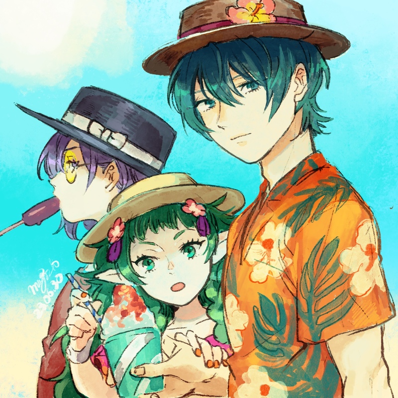 ひろずでもらった帽子にアガって描きました。