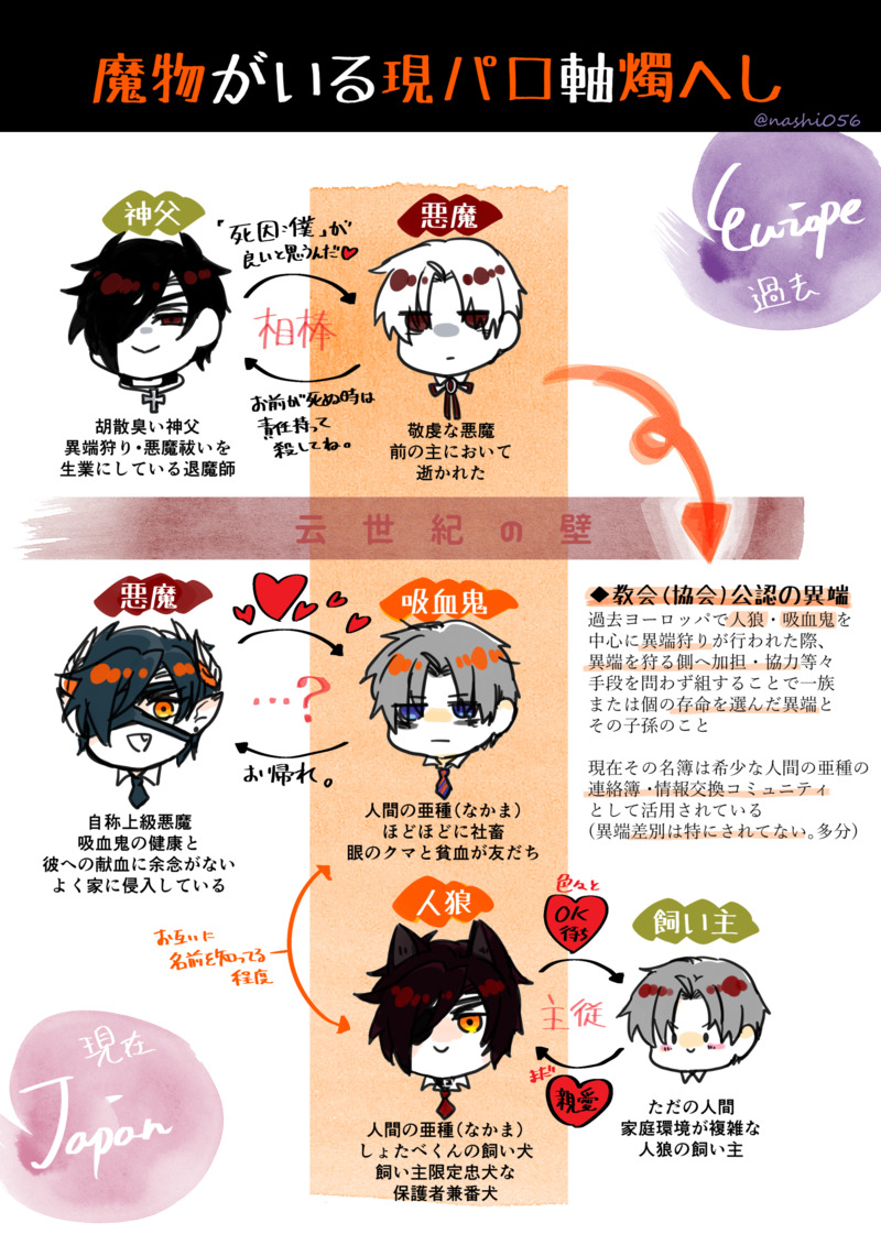 魔物がいる現パロ軸燭へしたち(①悪魔×吸血種※吸血種→一応人間枠/②神父×悪魔/③人狼×飼い主※おにショタ)