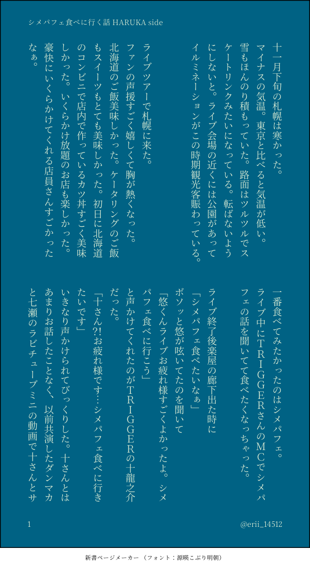 erii_14512☆quiet followDONE20センチ差のふたりがシメパフェ食べに行く話初めて小説書きました。龍悠広まって欲しいなと思って書いてみました show all(+4 images) Tap to full screen (size:618x1132).Repost is prohibited Let's send reactions! freqpopularsnackothersPayment processing Replies from the creator Follow creator you care about!☆quiet follow erii_14512DONE20センチ差のふたりがシメパフェ食べに行く話初めて小説書きました。龍悠広まって欲しいなと思って書いてみました 5 recommended works e=2.718281828459DOODLE填了个表呜呜呜呜太惨了没饭吃而开始学习画画表情有参考 まきまきDONEまきまきの線画を色塗りしてもらおう企画、塗ってくださった皆様の作品をまとめさせていただきました💖愛のこもった丁寧な色塗り、本当にありがとうございました( ߹꒳߹ )✨✨✨特別枠の参加で白浜くんも居ます(,,>艸<,,)💕SpecialThanks❣️ 35 どりーDONE🐾🤍バレンタイン相互様の誕生日プレゼントとして書いた🐾🤍のバレンタインデーのお話です。 2 si2023470661DOODLE 2 lca4evaDONEFunnies 3 tksm11092717DOODLE大人クロ月側位※メガネなし🌙※おもらし18↑?(y / n) いのべたいぞうDOODLEツイッターにも上げた落書き2月分🕊ファンアートの他にあのミームネタも有り 3 あああDOODLE王馬小吉のせりふ言わせたかっただけ rikka_etcDOODLE四季送り秋 NPCがおります 8