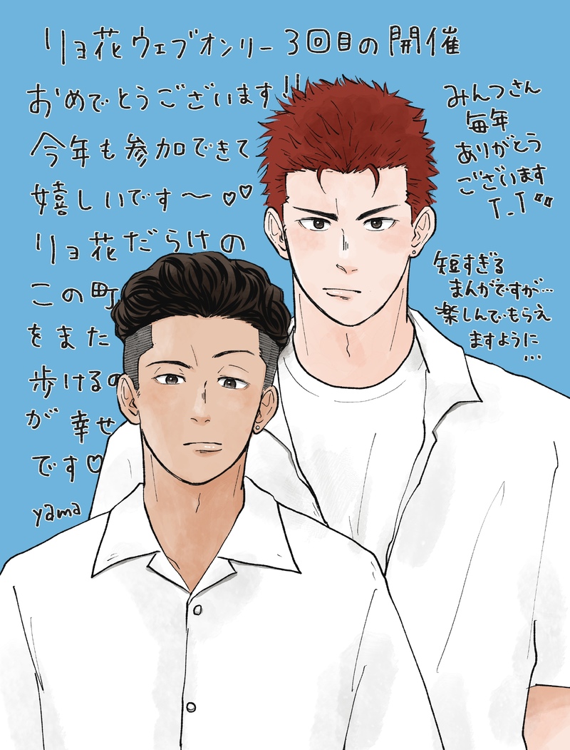ya_____ma☆quiet followDONE展示するのが遅くなって申し訳ないです〜!!!ウェブオンリー3年目おめでとうございます!!今年もまたここに来れて嬉しく思います( i _ i )passは2人の背番号4桁です♡ show hide show all(+9 images) Tap to full screen (size:2480x3260).Repost is prohibited Let's send reactions! freqpopularsnackothersPayment processing Replies from the creator Follow creator you care about!☆quiet follow ya_____maDOODLE去年のウェブオンリーで載せてた漫画です!リョーちんお誕生日おめでとう!! 14 ya_____maDONE展示するのが遅くなって申し訳ないです〜!!!ウェブオンリー3年目おめでとうございます!!今年もまたここに来れて嬉しく思います( i _ i )passは2人の背番号4桁です♡ 10 recommended works sa__hana_DOODLE짧 낙서 NKONKOZAT03DONEリョ花/借金取り×花屋その男純愛につきをboothにて購入してくださった方にお付けしたペーパーの再掲になります。ネタバレは含みませんが本編後なので気にされる方はご注意いただければと思います。ご購入いただいた皆様へ感謝を込めて。 2548 まつてい₇₁₀PAST宮城リョータ×桜木花道WEBオンリーイベントのため、5月に出したリョ花再録を展示致します🌅🌸通販はこちらです: https://everythingisok.booth.pm/items/4919642 16 ほむらDONE🔞前の部分まであげた3人は恋人(3BK)の🔞込みの全文になります。パラレルで花ちが寝ている間の三とリョのお話(絡みはない)も後々書く予定です。Pass:18↑?y/n 14403 sleepyuncle1DOODLE sleepyuncle1DOODLE刚打的乳钉(良花暗示) arare241DOODLEにょ花ちゃん総受け猫の日 健康2SPOILER新刊の設定、関連の短編小説詰め合わせコチラただの補足ですので読まれなくても大丈夫です。R18では無いですが本編がR指定にしております。 5105 すぐり梅子DONE【りょーてにおおきな花束を2】開催おめでとうございます!短いですがちょっとエッチなリョ花を描きました♪passはリョ花の数字4桁です!書き込みボードにお一言でも頂けると励みになります!! 4