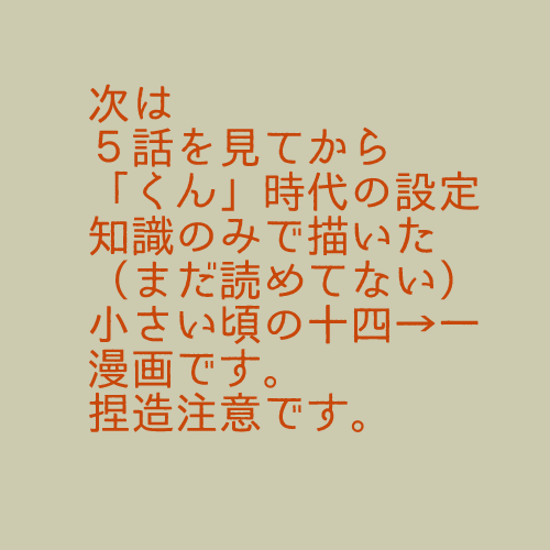 初期作品といえばこの一十四。絵も漫画も拙すぎて私はぼんやりとしか読めないんですがずっとこの一十四観で生きてます。注意書きで一←十四表記をミスってるのはいただけないですね。あとくんはちゃんと文庫版全巻揃えました。