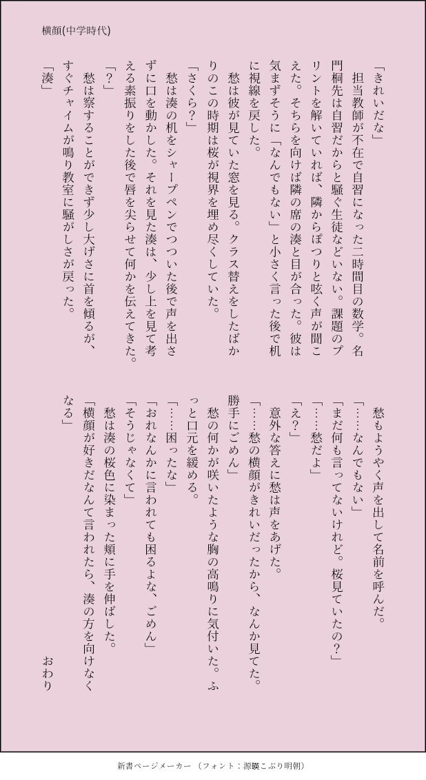 mintfe88☆quiet followMEMO中学時代の二人。付き合ってない。クラスメイトだったらかわいいな。愁くんの横顔は綺麗だな。 Tap to full screen (size:618x1132).Repost is prohibited mintfe88MEMO中2 来客のはなし①②モブが出ます! 2 mintfe88DOODLE高2 ペアルック付き合ってる2人で、お揃いに憧れるしゅうくん 2 mintfe88MEMO中2 小テストを受ける話 4 mintfe88MEMO中二のふたりシャー芯忘れた湊くん百倍返しだ!!!!!! mintfe88MEMO中二のふたり風紀委員になったよ 2 mintfe88MEMO中二のふたり忘れ物した湊くんのために、貴公子動きます