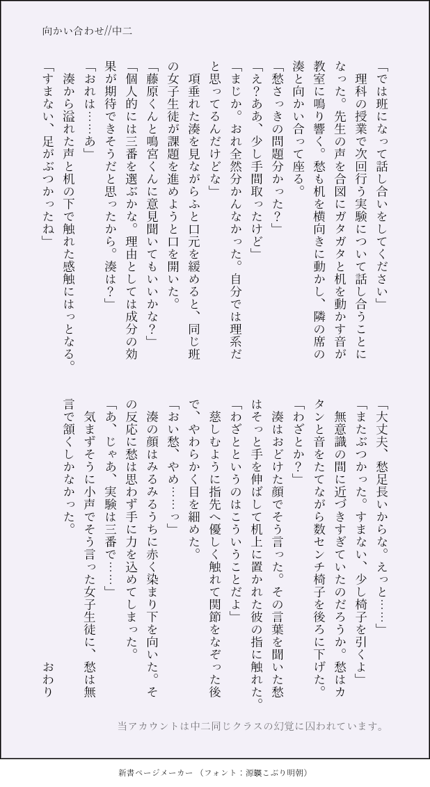 mintfe88☆quiet followMEMO中二のふたり愁くんは足が長い…… Tap to full screen (size:618x1132).Repost is prohibited mintfe88MEMO中2 来客のはなし①②モブが出ます! 2 mintfe88DOODLE高2 ペアルック付き合ってる2人で、お揃いに憧れるしゅうくん 2 mintfe88MEMO中2 小テストを受ける話 4 mintfe88MEMO中二のふたりシャー芯忘れた湊くん百倍返しだ!!!!!! mintfe88MEMO中二のふたり風紀委員になったよ 2 mintfe88MEMO中二のふたり忘れ物した湊くんのために、貴公子動きます recommended works nnn_132_83DOODLEボツ供養 2 mattya604PROGRESS進捗 SolitaryDOODLE《变成魅魔了但是?!》 まなかDONEトス君3展示作品①です『OTONA NO KANZUME』 20 kanekure0000DOODLE意味がわかるとエロい絵 taro_sabaDONE侑日webオンリー!君トス3開催おめでとうございます 6 もみじDONE【Dreamimg of U 展示作品】ピ/ス/メ沖田さんと夢主のほのぼの漫画(+イラスト一枚)で参加させていただきます!少しでもほっこりして頂ければ嬉しいです。 2 Long_matsugekunMEMO【百合】🟡🔵要素アリ📱🔵妄言(🟡→🔵←📱) 374 NooooaDOODLE⚠️百合表現あり⚠️