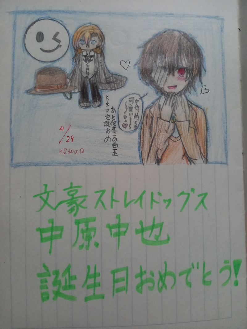 零気黒蜜☆quiet followPAST中原中也さん、お誕生日おめでとう!っていうことで昔かいたやつを晒します。転載されてもかまいません。アナログですみません!下手なのは小学生の時に描いたやつだからです。 #オリキャラ絵 originalCharacterPicture #中原中也 midlandCentralAlso #中原中也(文豪ストレイドッグス) #中原中也(文豪とアルケミスト) #太宰治(文豪ストレイドッグス) osamuDazai #アナログイラスト analogIllustration #誕生日おめでとうございます happyBirthday #スマイリー emoticon #謎 show all(+1 images) Tap to full screen (size:6000x8000).Repost is prohibited Let's send reactions! freqpopularsnackothersPayment processing Replies from the creator Follow creator you care about!☆quiet follow 零気黒蜜PAST中原中也さん、お誕生日おめでとう!っていうことで昔かいたやつを晒します。転載されてもかまいません。アナログですみません!下手なのは小学生の時に描いたやつだからです。 2 零気黒蜜PASTオリキャラのこを描いているのを晒します。一枚目 スミレ君2枚目 セレーネ・ロンバルドさん三枚目 宿儺 輪さん 3 零気黒蜜PASTオリキャラのイラストできたので晒します。 3 related works 日和@固ツイ繋がりたいタグDONEポイピクの方にもあげておきます。ロビンちゃん!お誕生日おめでとう! 零気黒蜜PAST中原中也さん、お誕生日おめでとう!っていうことで昔かいたやつを晒します。転載されてもかまいません。アナログですみません!下手なのは小学生の時に描いたやつだからです。 2 ィリュシアの骨DONEはぴば for @medhen333 2 HANSUKE_8CAN’T MAKE誕生日おめでとうございました!走り書きですがどうぞ受け取ってください! 1632 あいねDONEYayoiお誕生日おめでと~🎉✨😆✨🎊ハッピーバースデー🎁🎂🎉 あいねDOODLE音ちゃん誕生日おめでとう~🎉✨😆✨🎊