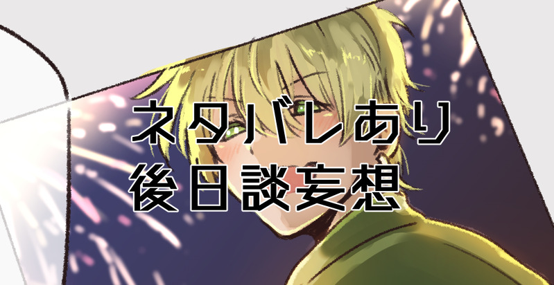 kobyo0303☆quiet followSPOILER #日取兄弟歌合戦から藤崎兄弟と共に見ました。とてもとても…良かった…後日談妄想です。規約読んだのでサムネ大丈夫とは思いますが…問題あったらこっそりお願いします。 show all(+1 images) Tap to full screen (size:1276x658).Repost is prohibited Let's send reactions! freqpopularsnackothersPayment processing Replies from the creator Follow creator you care about!☆quiet follow kobyo0303SPOILER #日取兄弟歌合戦から藤崎兄弟と共に見ました。とてもとても…良かった…後日談妄想です。規約読んだのでサムネ大丈夫とは思いますが…問題あったらこっそりお願いします。 2 kobyo0303SPOILER #高生の灰くだり恐らく皆んな大好き例のシーンバレとかいろいろ注意 3 kobyo0303DOODLE #なおっぷの夜こうにしか見えなかった。わんこズかわいすぎる 2 kobyo0303DOODLE #たかみやの夜ネタバレ。一番好きなシーン#高生卓 2 related works @6mutuki6oDONE #高生宅 #日取兄弟「ピンクのスカート お花の髪飾り」の真影お兄ちゃん女装なのでワンクッション 3 kobyo0303SPOILER #日取兄弟歌合戦から藤崎兄弟と共に見ました。とてもとても…良かった…後日談妄想です。規約読んだのでサムネ大丈夫とは思いますが…問題あったらこっそりお願いします。 2 TRPG_kirariDOODLEイラスト「」なんてね藍黄色なんてね日取真影くん TRPG_kirariDOODLE #藍黄色なんてね#日取兄弟らくがきボックス(増えていく) 13 okotall_SPOILER #日取兄弟本当にありがとうございました…捏造とネタバレというか匂わせあります とーろSPOILER日取兄弟って良くて…↓⚠️ネタバレ差分です fukami_nhMOURNING #日取兄弟「居なくならないでよ。それだけは、嫌だ。」 桃胡ちょこSPOILER しばたSPOILERまよいにぃちゃ… #日取兄弟 4 recommended works pop_corn_NaclDONE別アカウントのアイコン用に色塗りしたヒコーキ #高生卓 numm_SanMOURNING真影くん誕生日おめでとう何もかも間に合わなさそう完成しなさそうな為ぽいぽい最後の一枚のみ、# 藍黄色なんてね のネタバレを含みます 4 senbei_tweets2DONE #高生宅#日取兄弟 2 瑛くんSPOILER鈴風くん左京さんの布団にもぐりこんでくれマンガ※左京さん家の間取り捏造セッション( #たかみやの夜 )見てから見てね 16 haishunosukeSPOILERシナリオ「プルガトリウムの夜」および、セッション「たかみやの夜」のネタバレありリアタイしてたときの絵。 6 kobyo0303DOODLE #なおっぷの夜こうにしか見えなかった。わんこズかわいすぎる 2 史恵(しえ)SPOILER班長とももちゃん #なおっぷの夜 ムツキナナPAST※2021.2.11三七の「果てにて」を視聴しましたので、太一と継後を描いてみました。「果てにて」のシナリオバレを含みますのでご注意ください。あのシーンの時に寄り添っていたらいいなという妄想です(服装も妄想です)。 沙汰光DOODLEたかみやの夜前半、好きシーンシナリオバレ無し、RPバレ有り