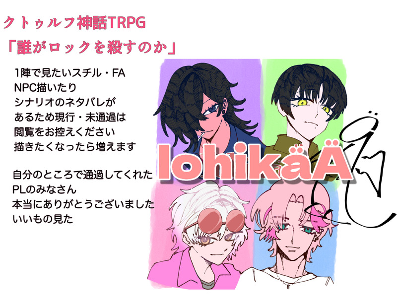 kabokabo8339☆quiet followSPOILER誰がロックを殺すのか1陣スチル.FA,NPC増える時に増えるネタバレありのため現行・未通過❌ show all(+1 images) Tap to full screen (size:3000x2300).Repost is prohibited Let's send reactions! freqpopularsnackothersPayment processing Replies from the creator Follow creator you care about!☆quiet follow kabokabo8339DONE嘲笑う、冥々立ち絵と差分 7 kabokabo8339DOODLE神使のヤシロ 現行・未通過❌HO3の立ち絵差分ちょっといじくって保存してた差分に刺された 5 kabokabo8339PROGRESSスタァリィ アイド バンドマン! 未通過❌一旦ガワ完成!1枚目はネタバレなし2,3枚目ネタバレあり 3 kabokabo8339DONEラ・ニュイ・エトワレの猫用の猫耳差分ソフィアとミョートネタバレなし 3 kabokabo8339DOODLE古今、零れて。のらくがき自探索者のあれこれそれが見たいんだよ現行・未通過❌ 2 kabokabo8339DOODLE四季送り現行・未通過❌4月1日に自陣が性転換してたので便乗で自探索者 recommended works ぽん (°▽°)DONE⚠️女体化注意オルルディ子襲い受け気持ちはいつでも「朗報!オルルディ子ダヨ!」 salmoneyeballsDOODLEEng.ver 4 jun_inagoSPOILERGODARCA 現未❌自陣らくがき(描かせて頂いたものなどまとめ)#大会開催班戦車+他アルカナさんお借りしてます🙇♀️(太陽、力、塔、悪魔、恋人、正義、節制、吊男、愚者)最終更新→6/26 (降順) 15 kabokabo8339DOODLEGODARCAイロモノ妄想煩悩かっこいいとか、かわいいとかない 2 つばきSPOILER22個、手に入れたよ、、、一部独自解釈で集めたのもあるので怒らないでぇ、、、#大会開催班 3 yuko_roseDOODLE「遺香廻り」現行未通過×とあるNPCのクリスマスイラストパス:OK 2 KaimenSpongeDONEさんむそ現パロ 徐庶と馬岱の食べ歩きシリーズ付き合ってるけどまだ同棲してない頃のクリスマスのようす左右はどちらでも。 770 とちちとせDONEルーカスエラピル あーんして! Part1姉妹の食事中の出来事です。(2023年制作)2024/12/25公開 4 とちちとせDONEルーカスエラピル 素敵な贈り物 Part3「サンタさんが来てるの!」と大喜びするラピルだったが、サンタさんの正体は⋯!(2023年制作)2024/12/25 3
