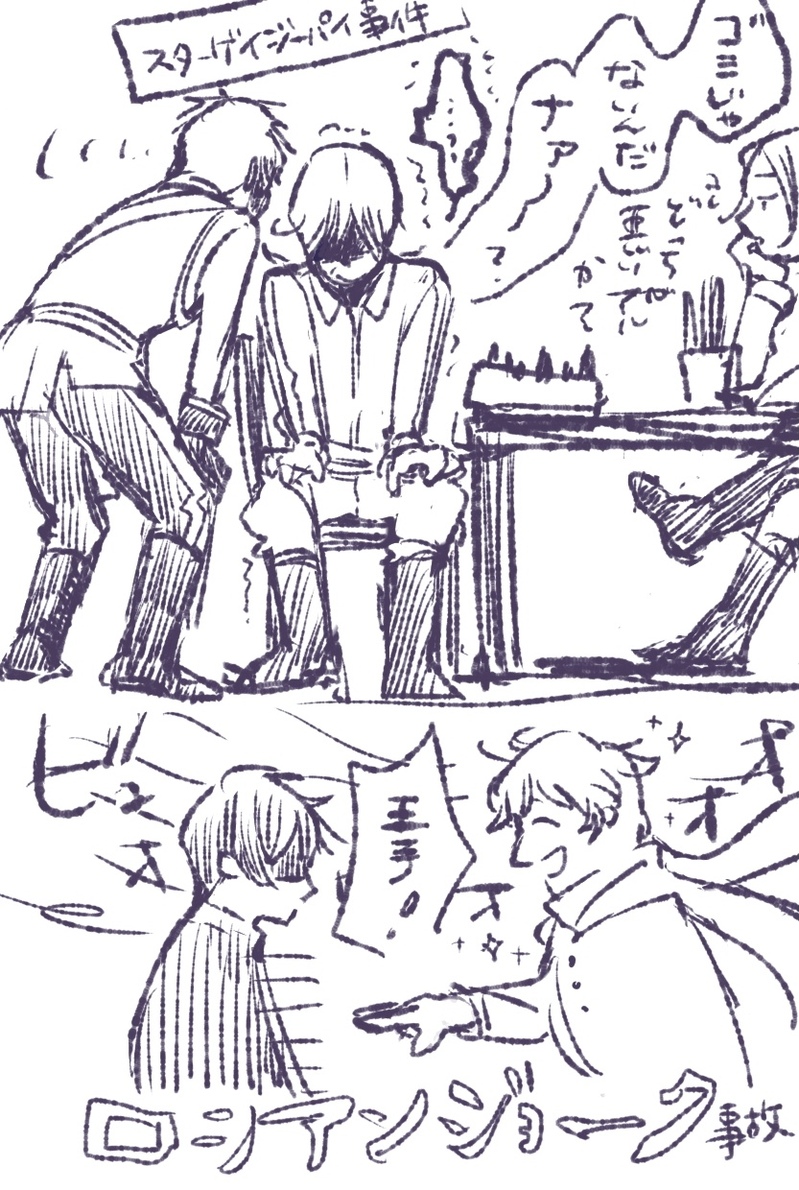 aso2281☆quiet followDOODLEヘタミュ大阪3日目夜の覚え書き。(うろ覚え)後列席だったのでハッキリしないんですけどアレは多分スターゲイジーパイ…ミュリスアドリブで持ち直せないロマーノとの掛け合いが可愛かったです。 show all(+1 images) Tap to full screen (size:833x1240).Repost is prohibited Let's send reactions! freqpopularsnackothersPayment processing Replies from the creator Follow creator you care about!☆quiet follow aso2281DOODLEヘタミュドヴァの例のあのシーンフランスの胸にイギリスが殴るの耐えるみたいに頭コツンしてたのが堪らなかった aso2281DOODLEヘタミュ大阪3日目夜の覚え書き。(うろ覚え)後列席だったのでハッキリしないんですけどアレは多分スターゲイジーパイ…ミュリスアドリブで持ち直せないロマーノとの掛け合いが可愛かったです。 2 aso2281PASTニコイチなドヴァの話。数年前ドヴァへ出戻りした一発目くらいで描いたので、かなり絵柄が迷子してますが、結構気に入ってるネタです。 2 aso2281PAST古の時代…ホ”ンデージりすに憧れが… aso2281DOODLEエコバッグを作ってもらったアーサーちゃん aso2281REHABILI尚、容疑者は「ぇっちなフラアサを描きたかった」「トイレ立ちバ●クは浪漫」などと供述しており……清書をする気力は無かった模様で…す…みません